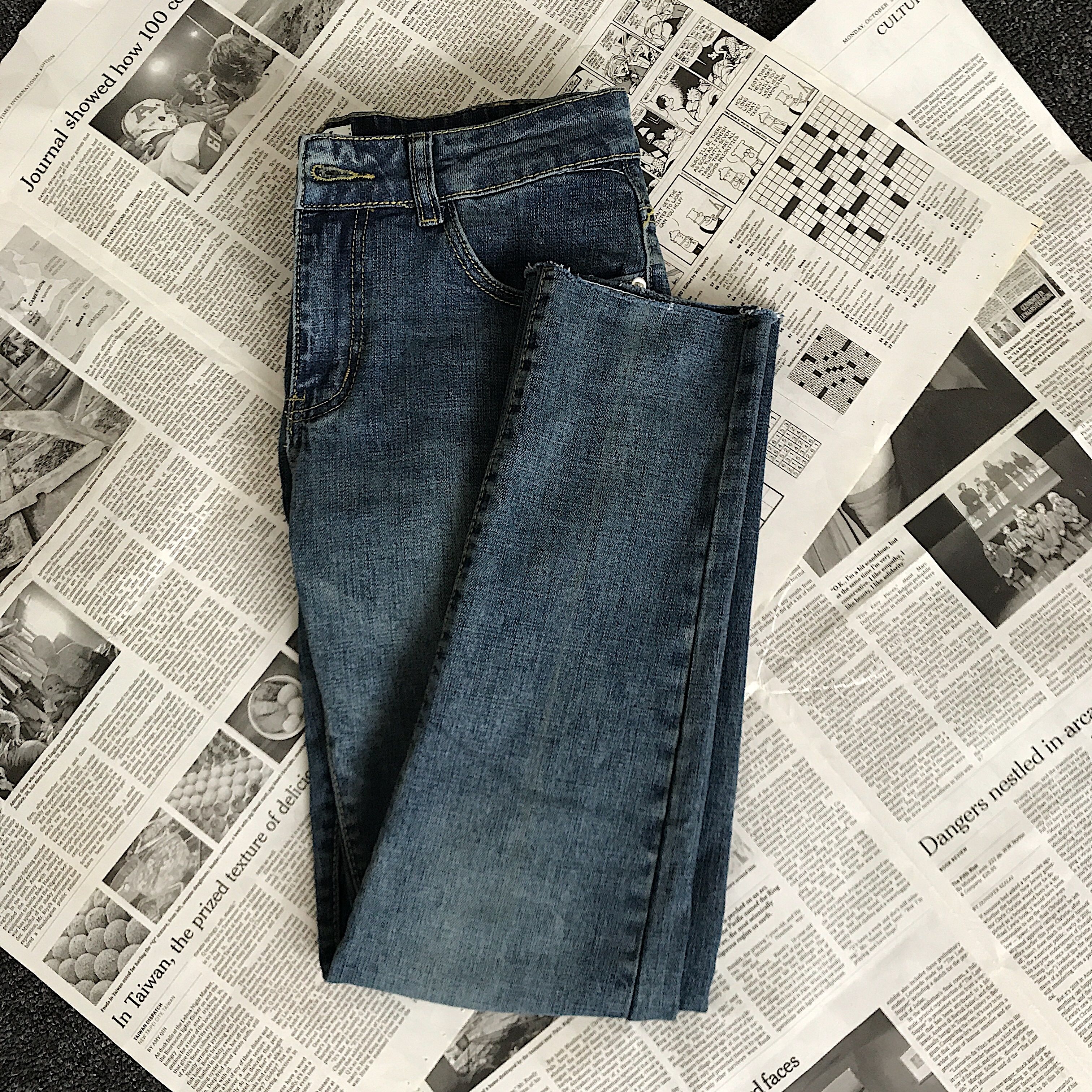 高腰设计,拉长身材比例。高腰牛仔裤,显瘦显腿长。直筒裤型,修饰腿部线条。