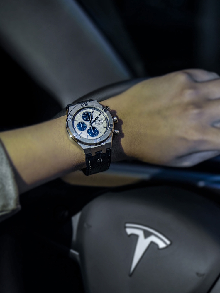 Maurice Lacroix艾美表自上世纪70年代就一直在瑞士潜心打造腕表作品,这款手表的六角螺纹计时安全锁和旋入式M字LOGO表冠,无一不是正品的体现。精致工艺打造的鱼鳞纹双按蝴蝶扣佩戴非常方便,升级版的易拆生耳装置,3秒拆卸,3秒换装,操作简单易上手。而且戴起来好看又精致。