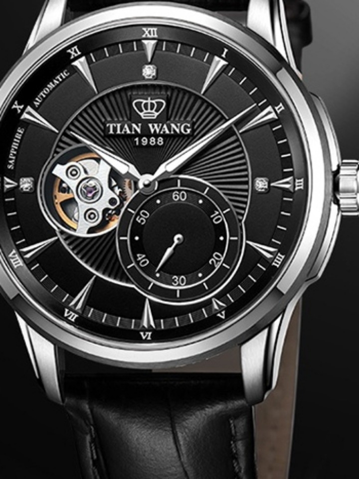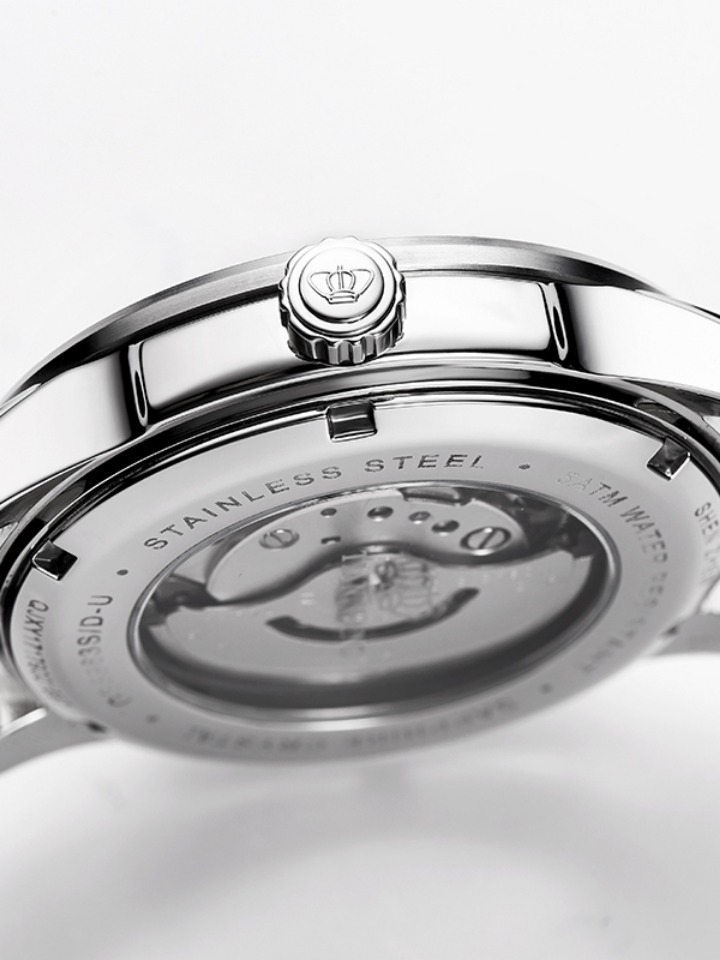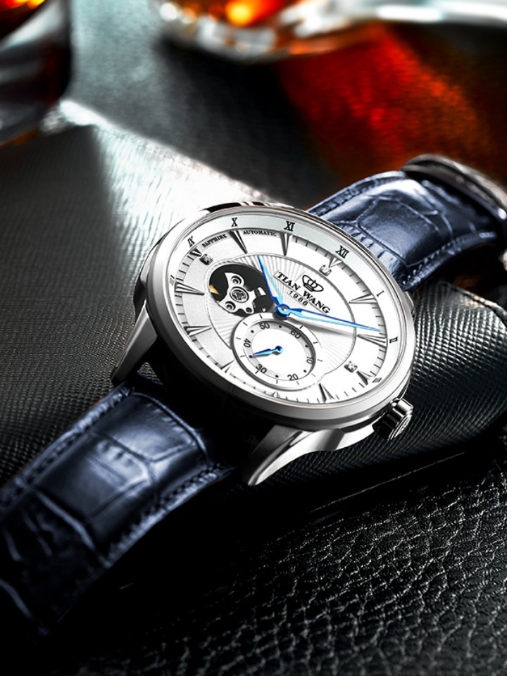 简约商务机械男表彰显出型男绅士的品格,沉稳内敛的外观配上大罗马字钉,展现优雅的格调,真皮皮带休闲舒适,和西装搭配凸显出男人温文儒雅的气质,皇冠暗扣展现高贵身份。
