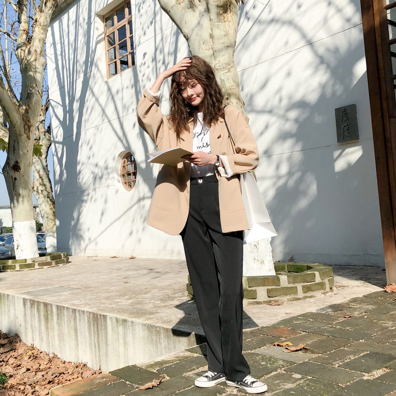 高腰的设计,拉长腿部线条,显瘦效果很好,高腰的版型,很显高挑,修身的剪裁,修饰腿部曲线,上身很有范。