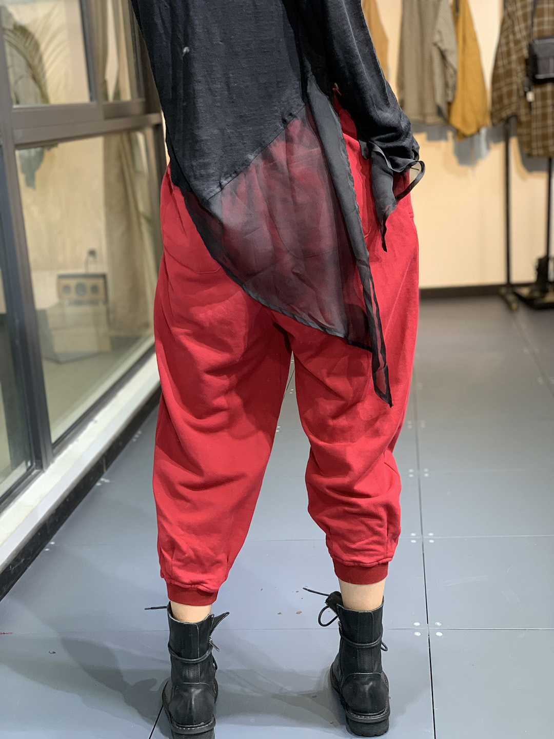 高腰的设计,拉长腿部线条,显瘦效果很好,高腰的版型,很显高挑,修身的剪裁,修饰腿部曲线,上身很有范。