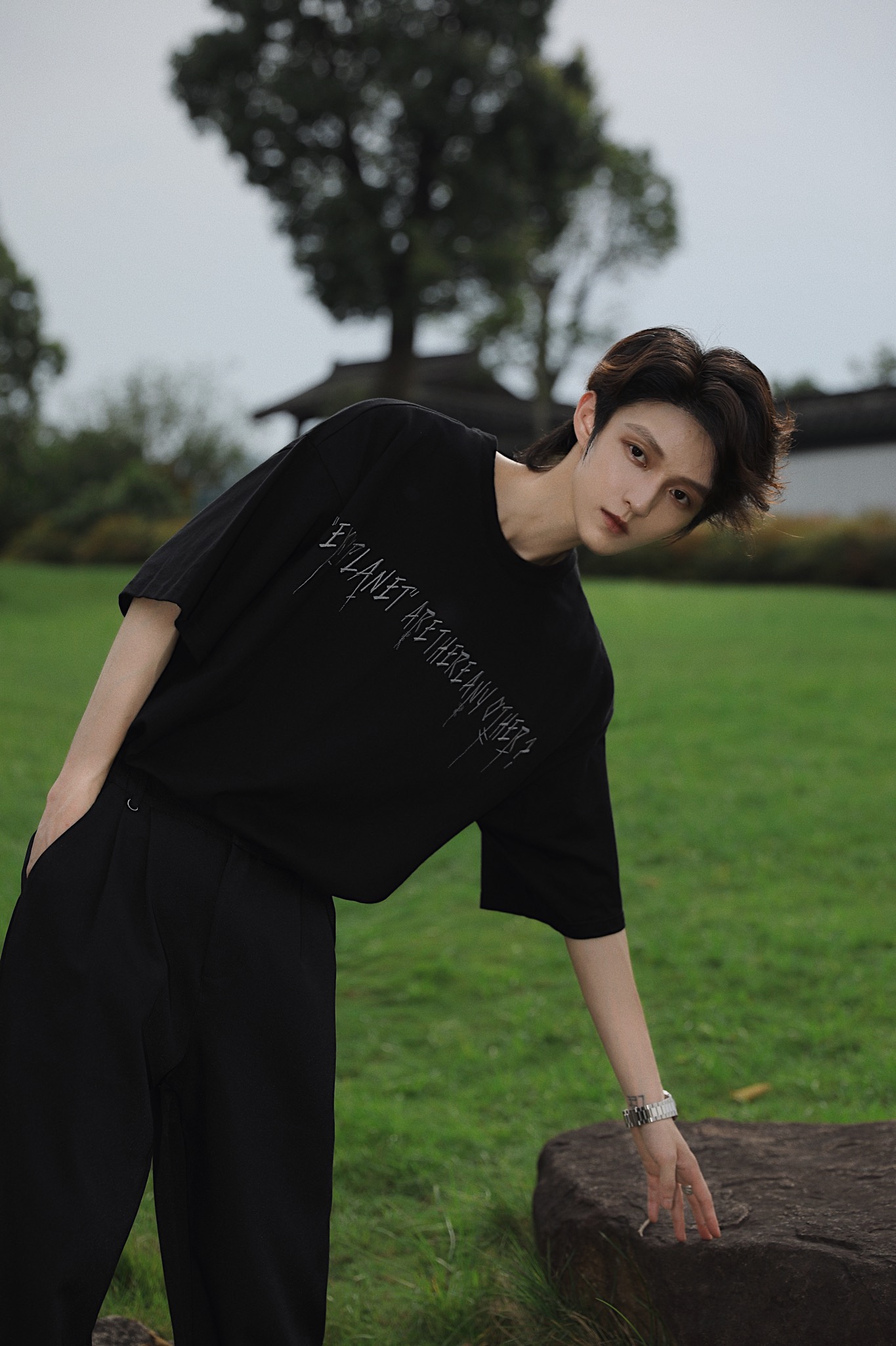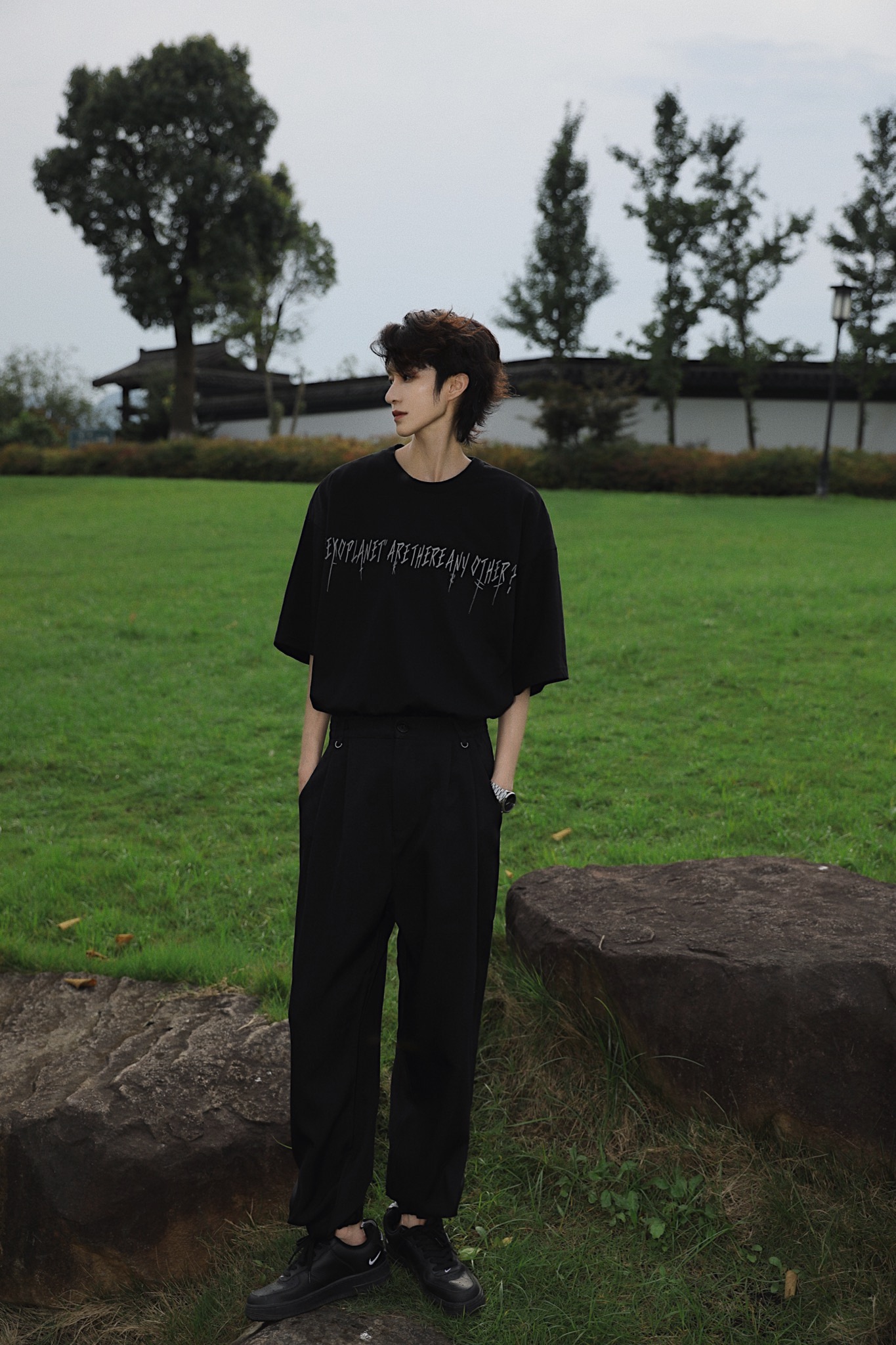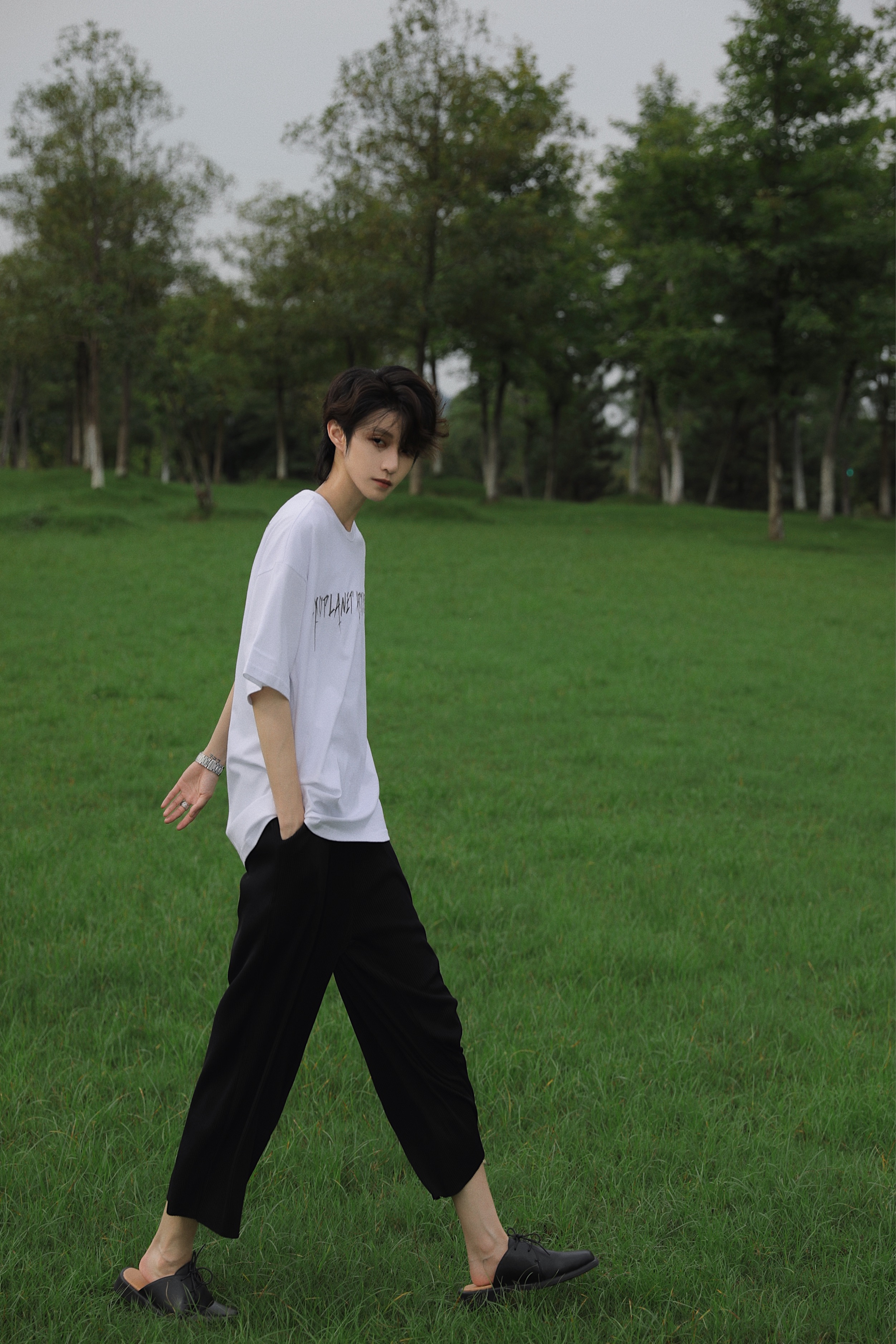 字母t恤搭配束脚卫裤,个性吸睛。个性字母印花,时髦吸睛。踩上一双平底帆布鞋,轻松凹造型。
