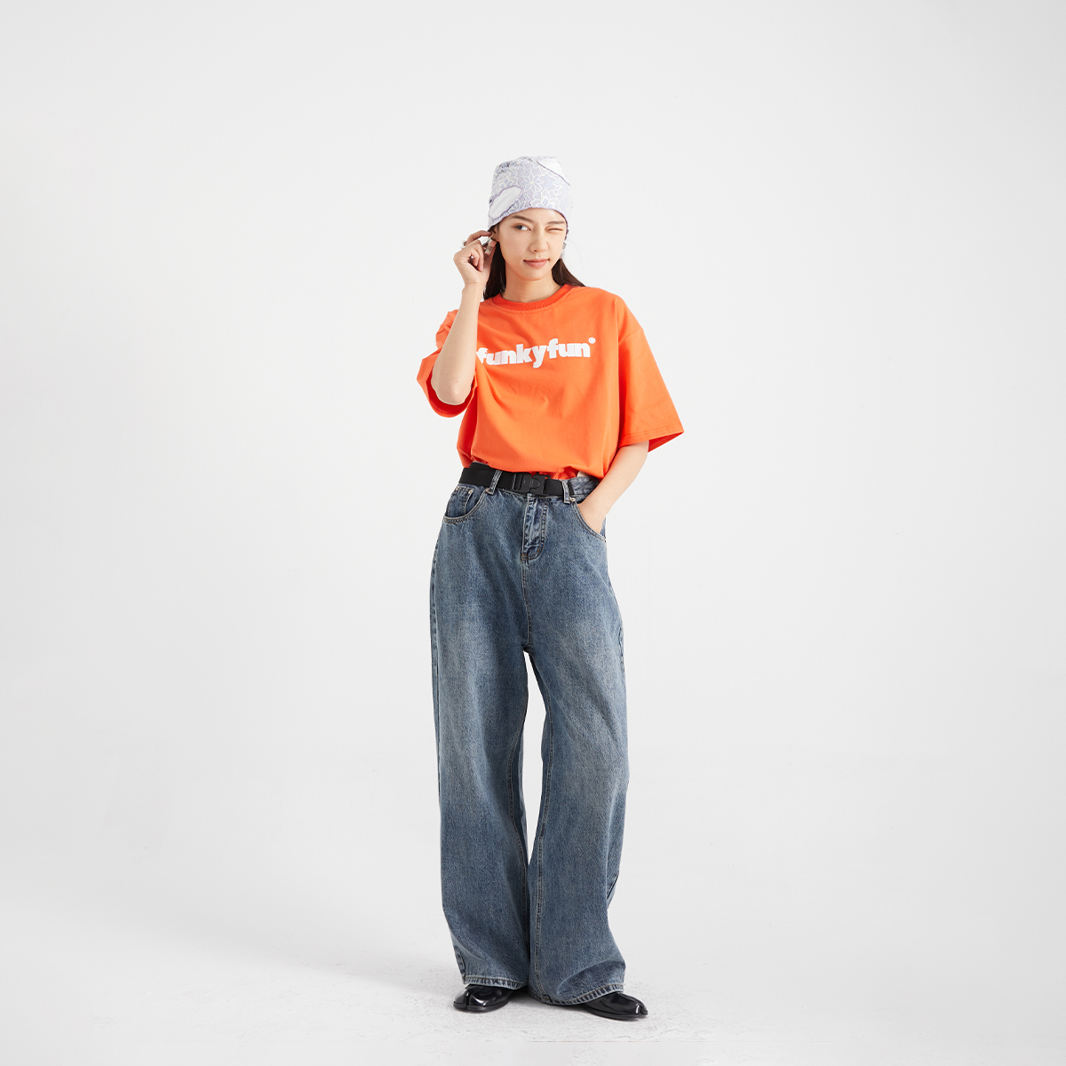 这款t恤是简约的风格,宽松的版型,时尚百搭,胸前的字母印花,很有个性,搭配牛仔裤或者短裤都很好看。