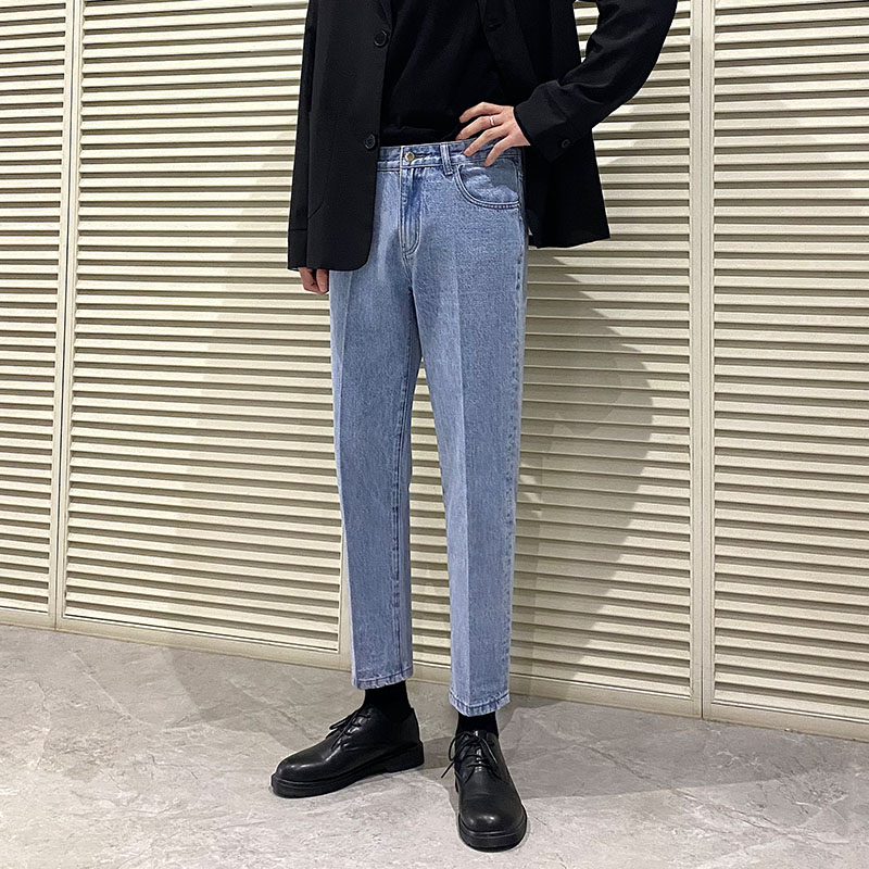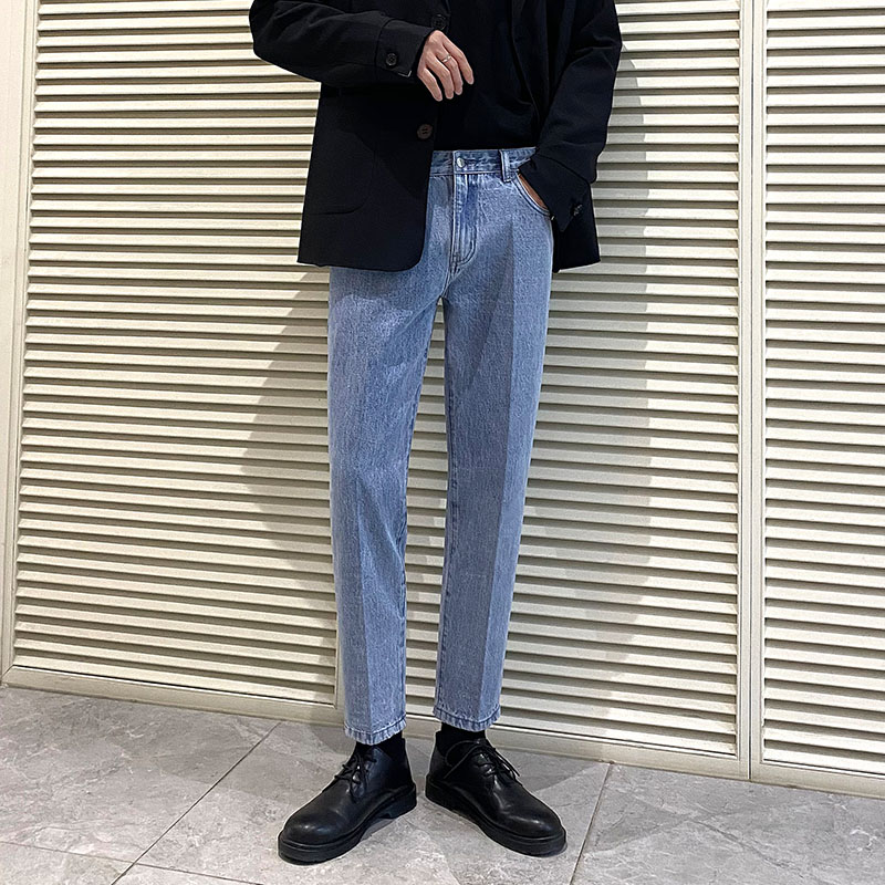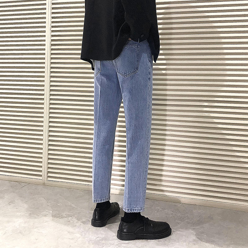 高腰设计,拉长身材比例。高腰牛仔裤,显瘦显腿长。直筒裤型,修饰腿部线条。