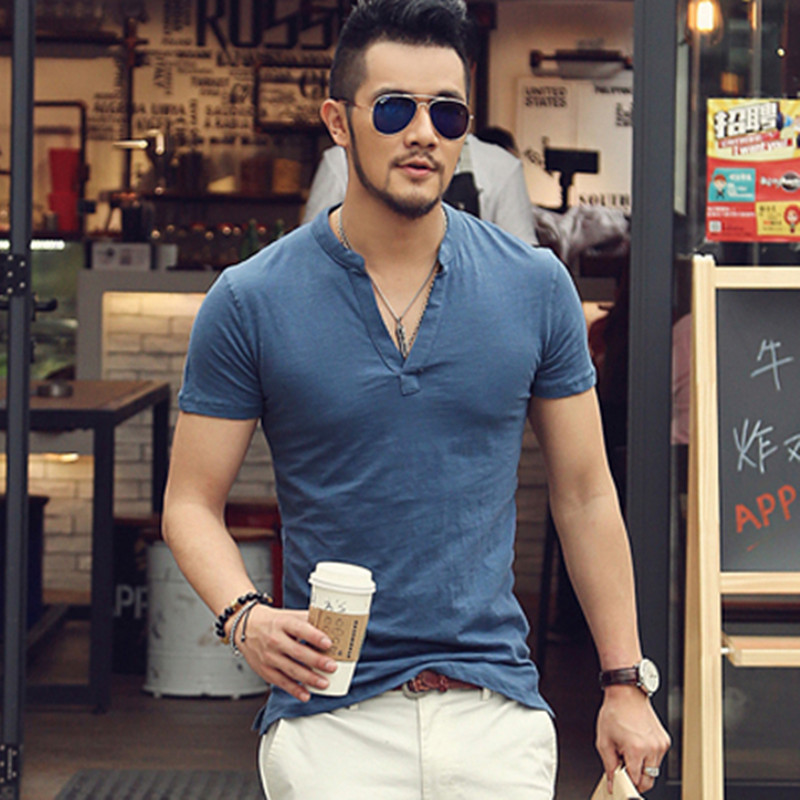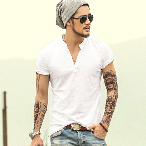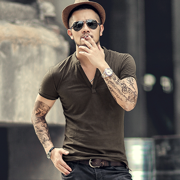 经典T恤衫,时尚又百搭。V领设计,上身挺括有型。修身版型,适合各种身材。