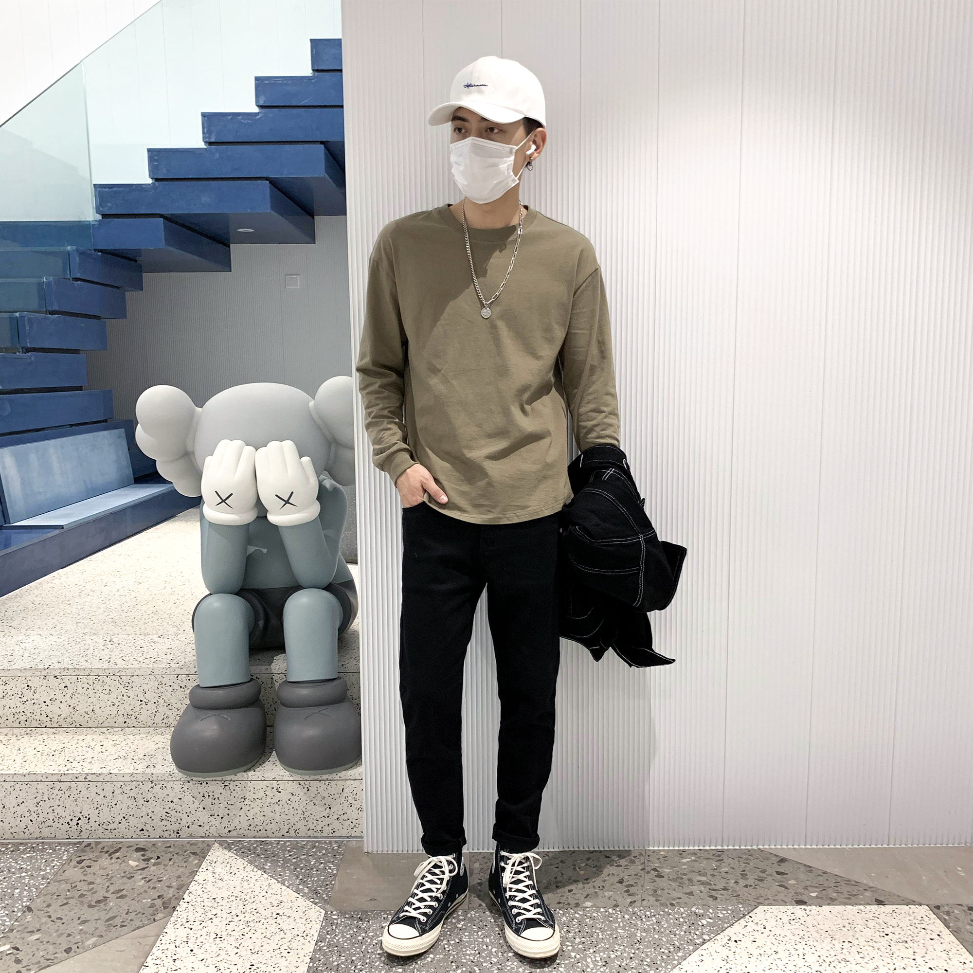 简约的高腰设计,搭配上修身的版型,上身显瘦又显高。