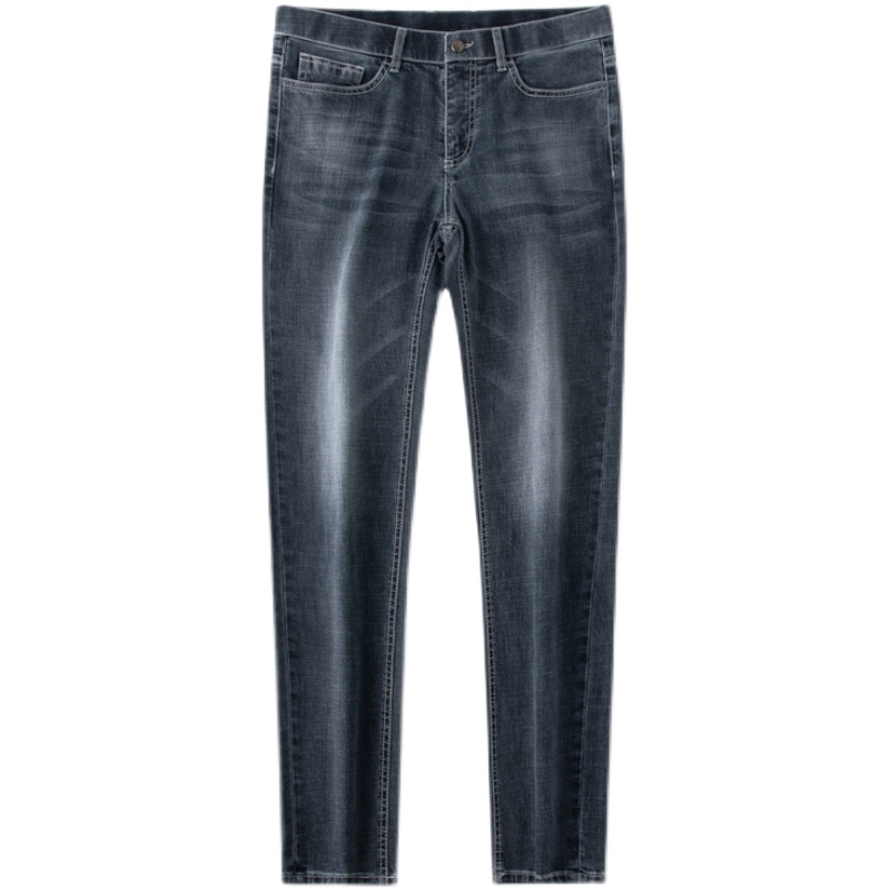 高腰设计,拉长身材比例。高腰牛仔裤,显瘦显腿长。直筒裤型,修饰腿部线条。