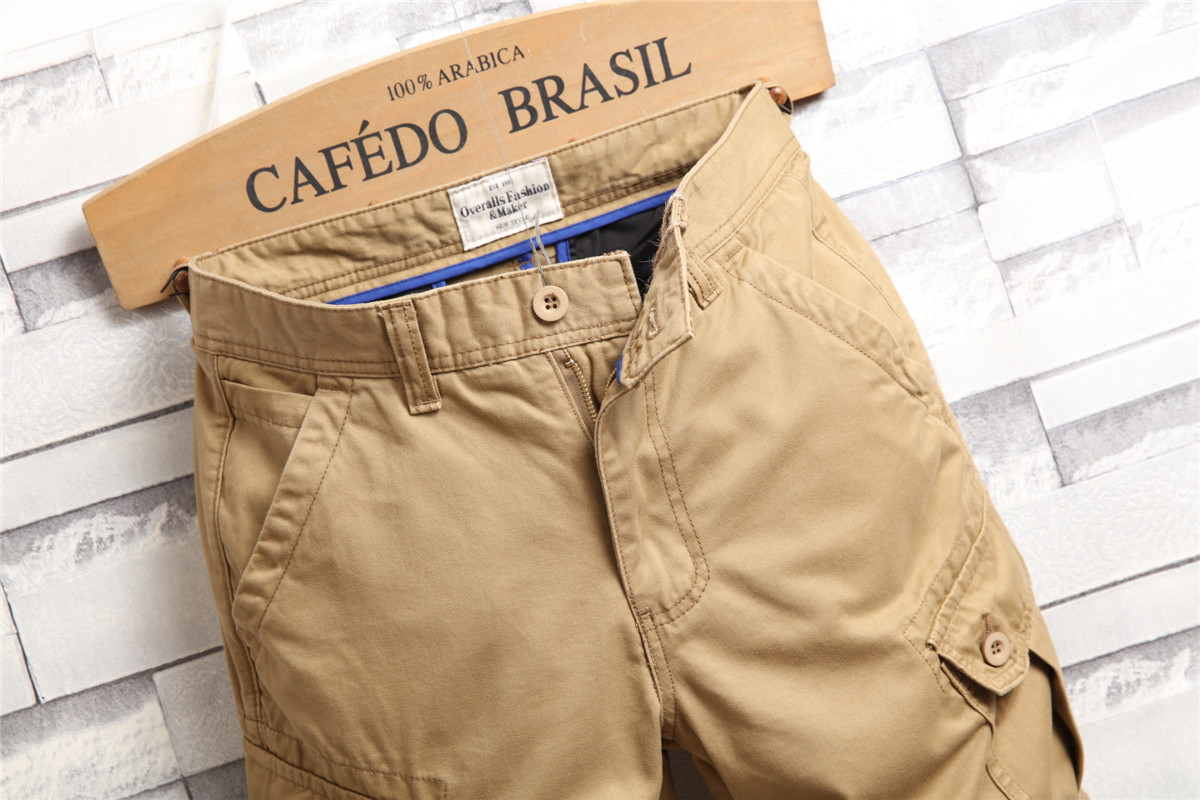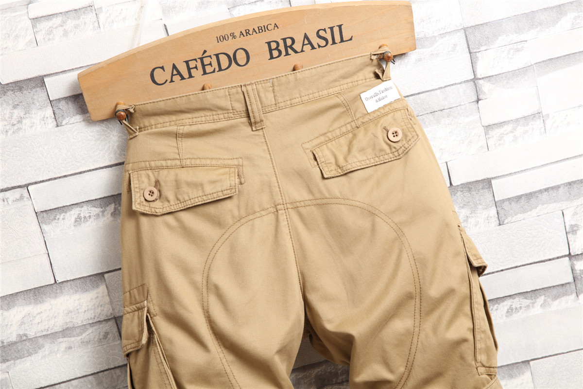 多口袋装饰设计,打破沉闷。精致纽扣点缀,美观大气。纯棉材质,亲肤舒适。松紧裤腰,穿脱便捷。