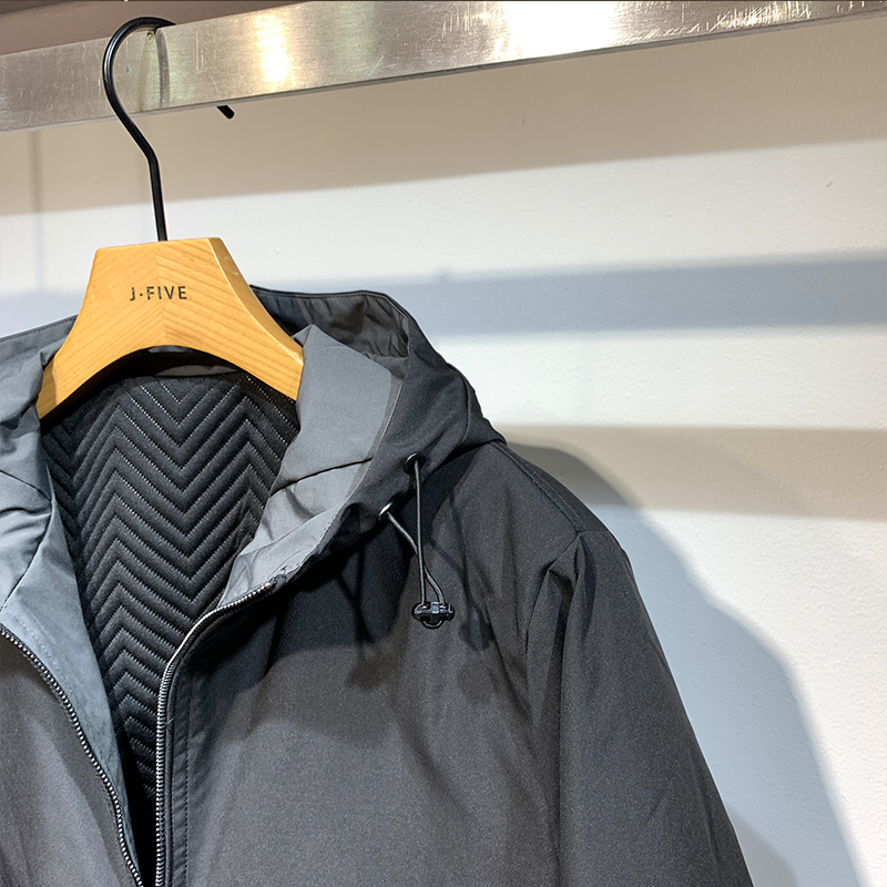 这款一款简约时尚的夹克,版型是连帽的设计,帅气时尚,个性的拼接设计,带来一种独特的视觉感受。