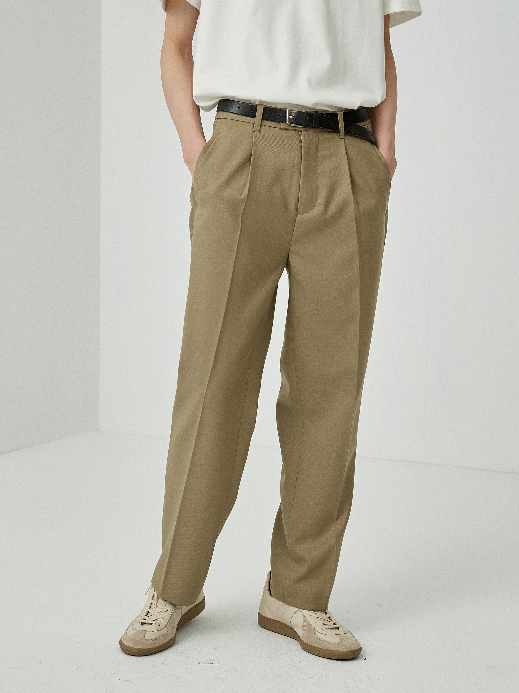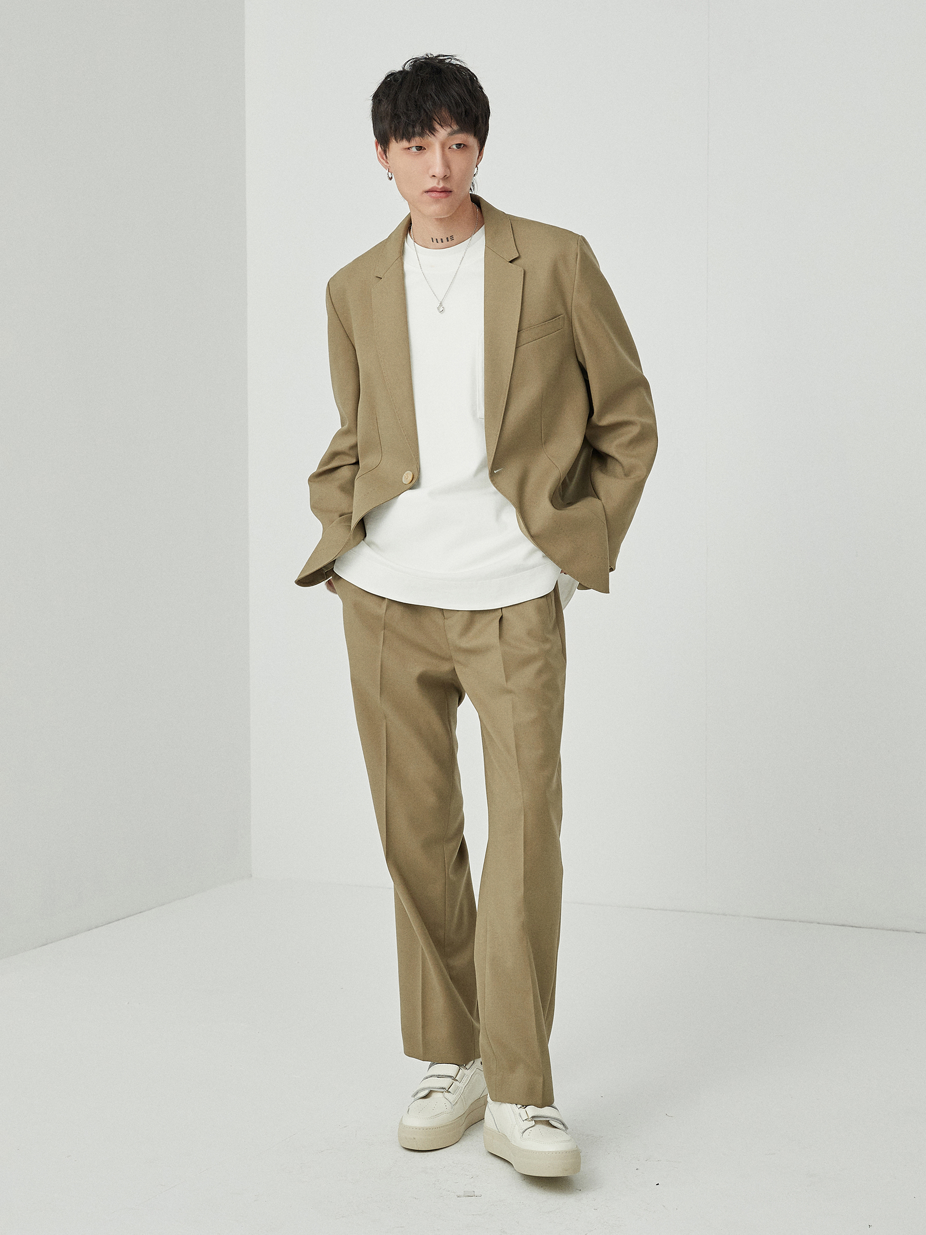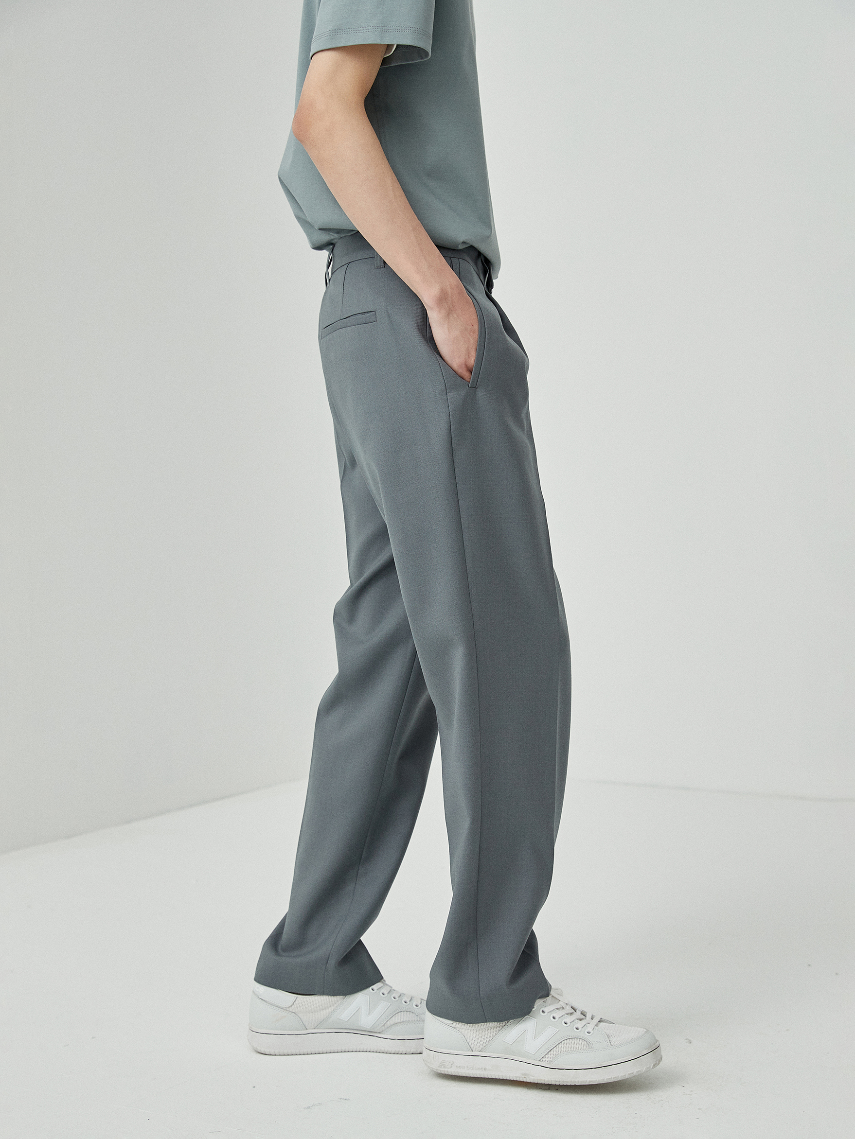 裤身的版型,修身腿型,显瘦显高。上身非常显腿长。