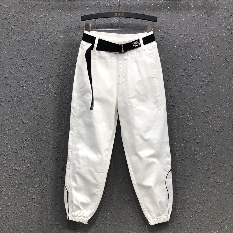 高腰设计,拉长身材比例。高腰牛仔裤,显瘦显腿长。直筒裤型,修饰腿部线条。