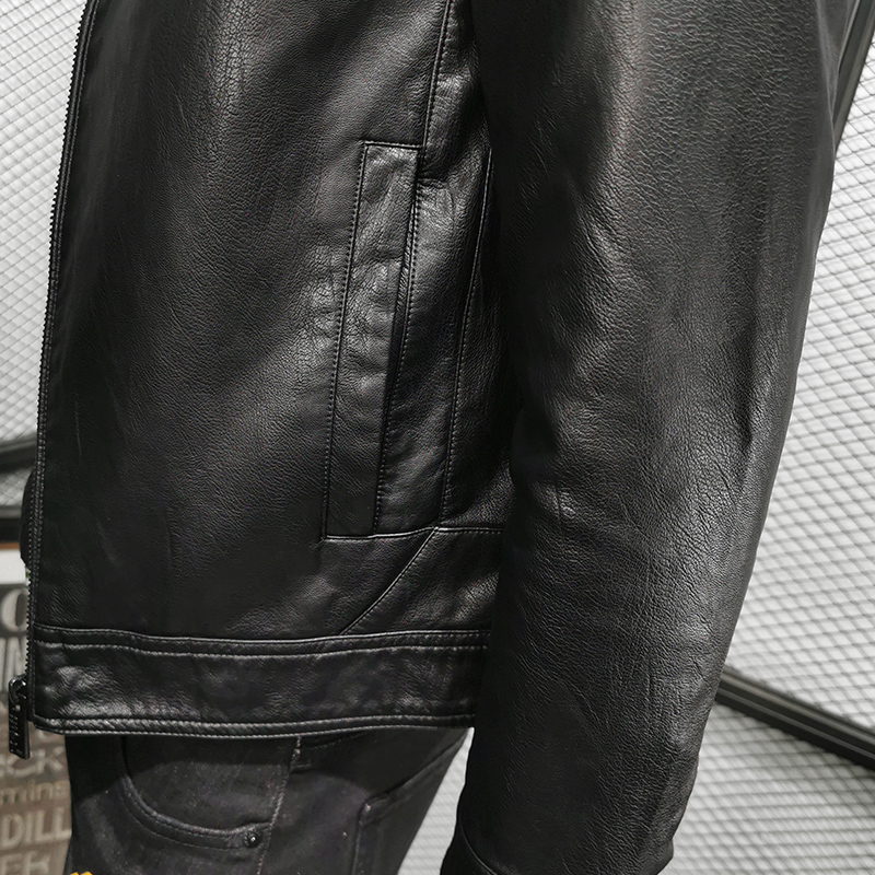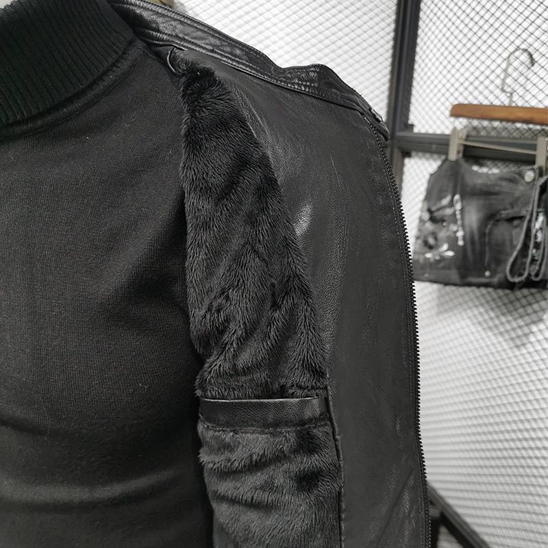 皮衣的面料是优质的绵羊皮材质,柔软舒适,透气效果极好。