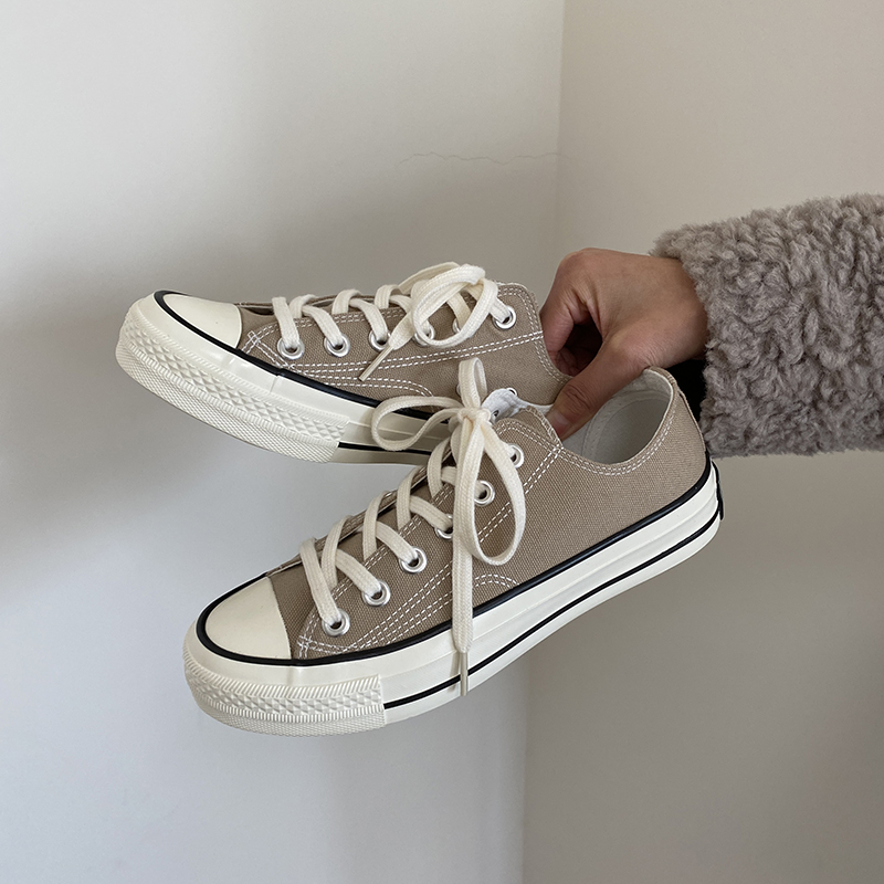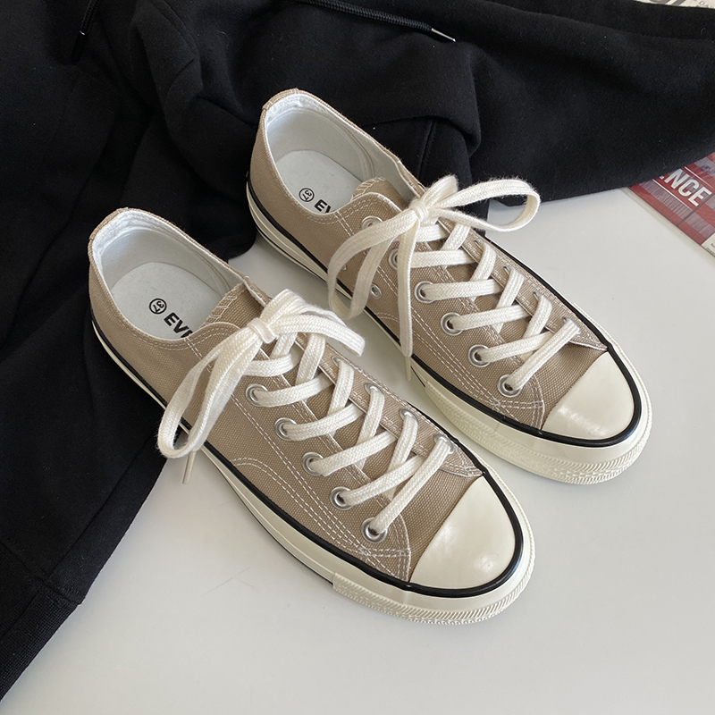 低帮设计,拉长腿部线条。简约的款式,时尚又百搭。帆布鞋底,穿着舒适透气。