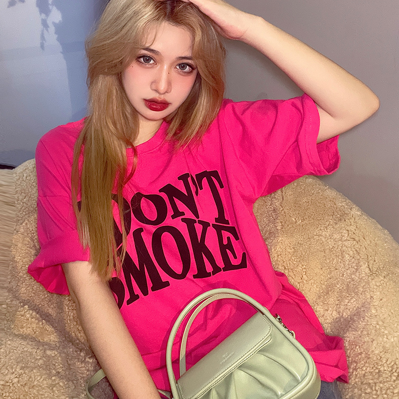 这款t恤是简约的风格,宽松的版型,时尚百搭,胸前的字母印花,很有个性,搭配牛仔裤或者短裤都很好看。