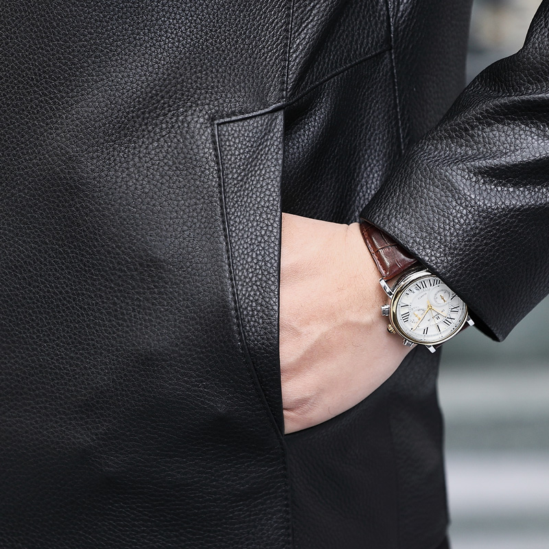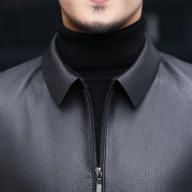 夹克外套,修饰身材比例,头层牛皮材质,舒适透气,翻领设计,时尚大气,修身版型,让你轻松驾驭。