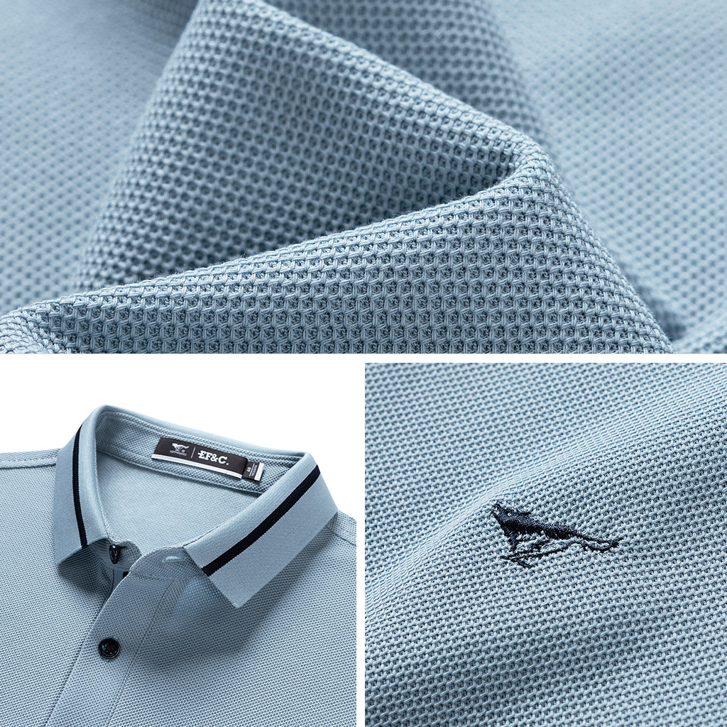 优选的纯棉针织面料,吸湿透气,质感细腻,穿着柔软亲肤。精致纽扣,彰显品牌气质。