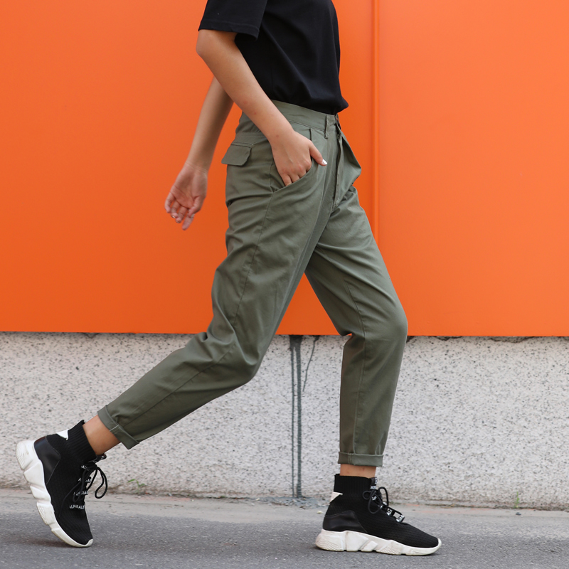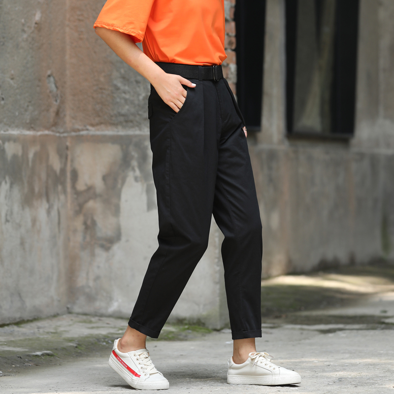 高腰的设计,拉长腿部线条,显瘦效果很好,高腰的版型,很显高挑,修身的剪裁,修饰腿部曲线,上身很有范。