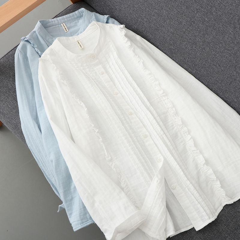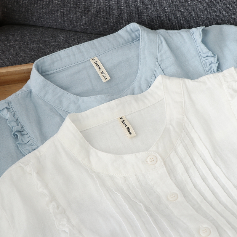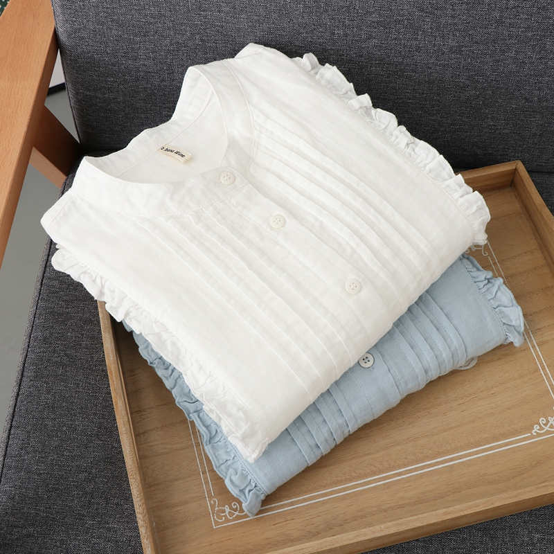 全棉面料,舒适透气,文艺。翻领设计,衬托脸部线条。印花图案,彰显时尚个性。