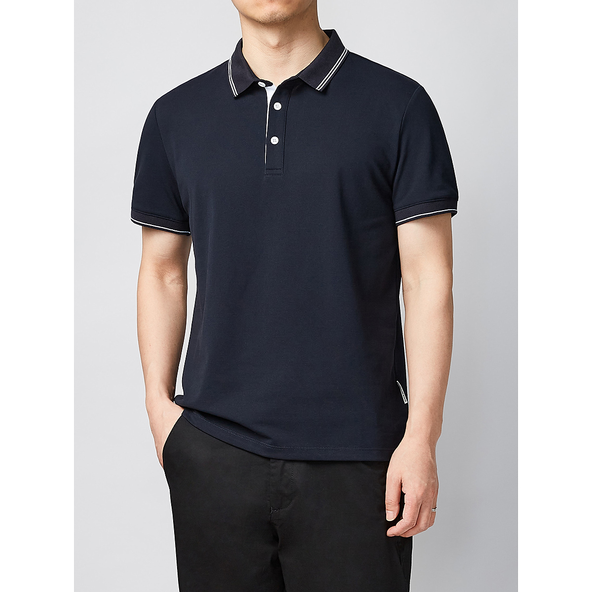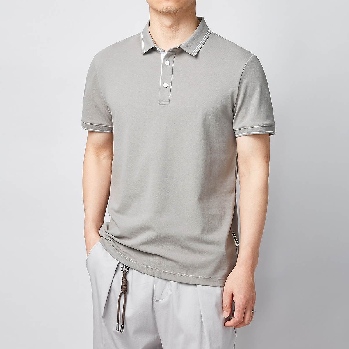 简约的高腰设计,搭配上修身的版型,上身显瘦又显高。
