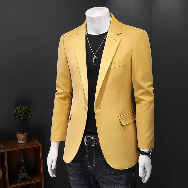 经典的翻驳领,给人一种休闲的感觉。简约单排扣的门襟点缀,简洁有范。精致的西装领口,彰显复古感。