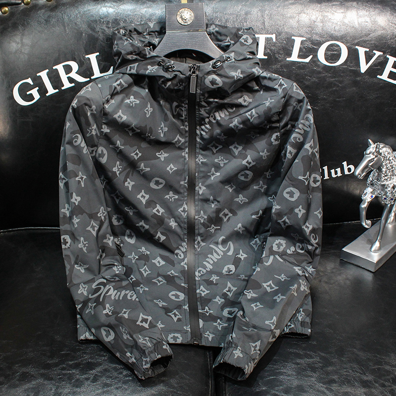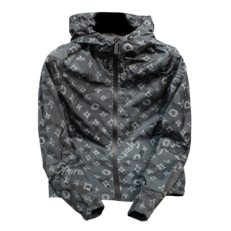 夹克设计,时尚感十足。宽松的版型,穿着舒适自在。帅气的连帽设计,修饰颈部线条。