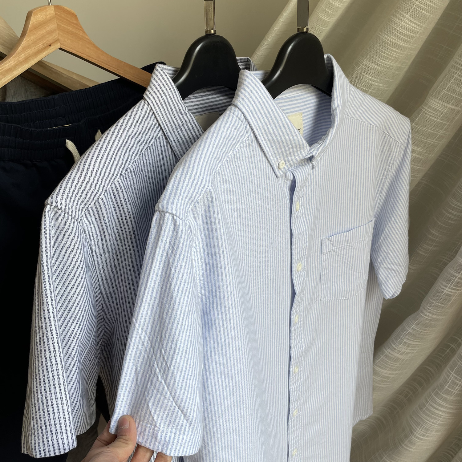 简约的高腰设计,搭配上修身的版型,上身显瘦又显高。