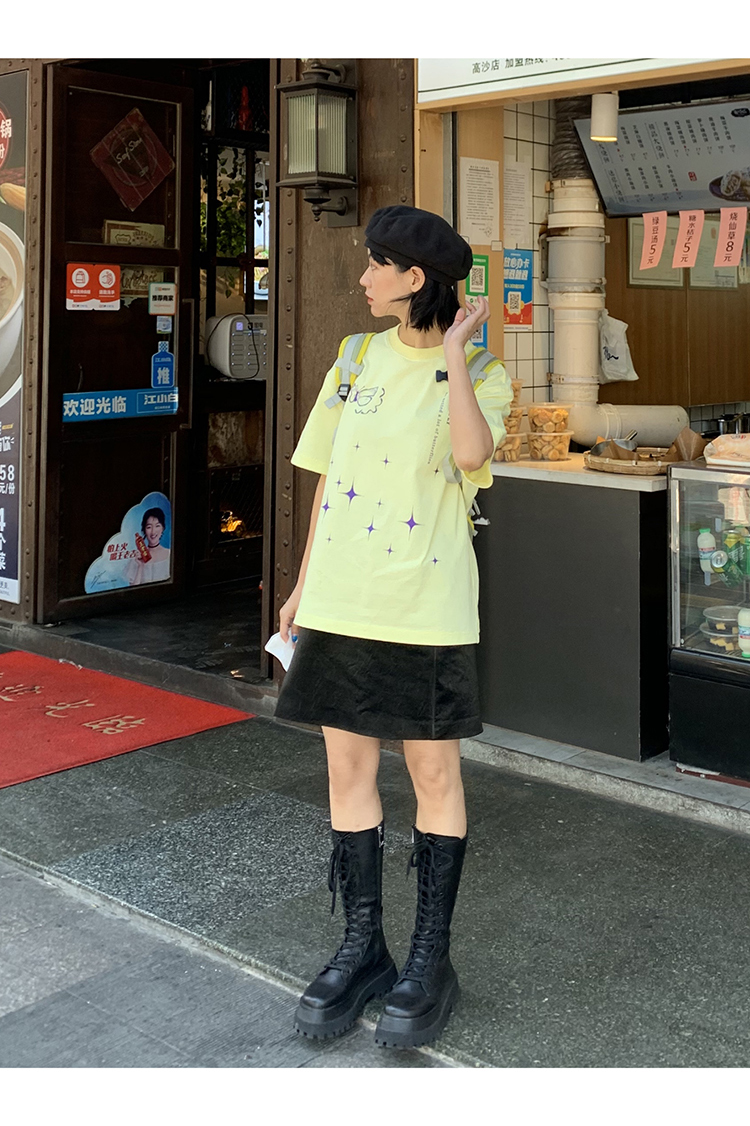 这款t恤是简约的风格,宽松的版型,时尚百搭,胸前的字母印花,很有个性,搭配牛仔裤或者短裤都很好看。