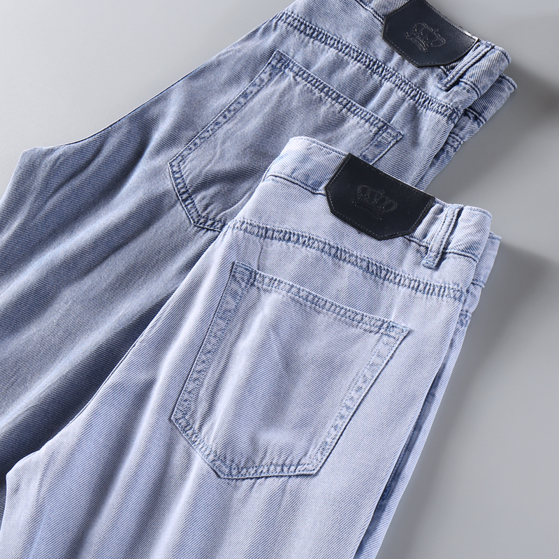 高腰设计,拉长身材比例。高腰牛仔裤,显瘦显腿长。直筒裤型,修饰腿部线条。