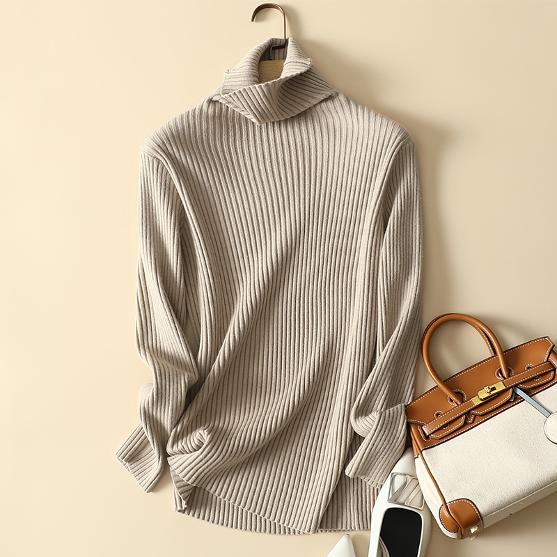 很简洁干练的一款高领毛衣,简约时尚的堆堆领设计,很好的修饰脸部轮廓,修饰小巧纤细的颈部线条。