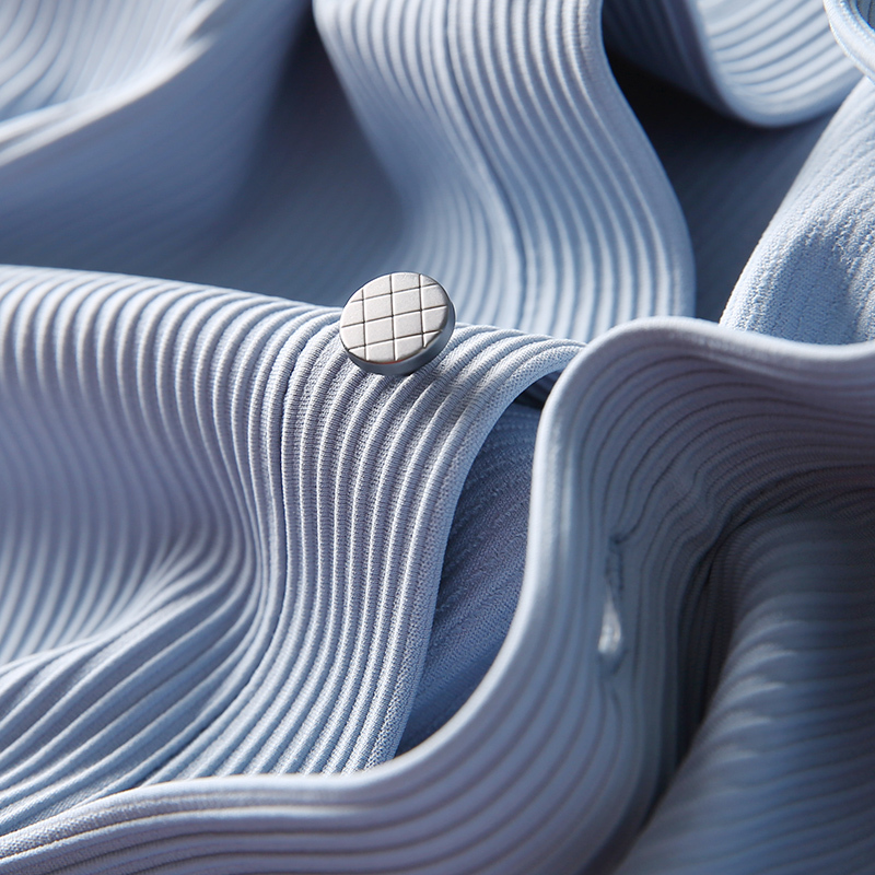 简约的高腰设计,搭配上修身的版型,上身显瘦又显高。