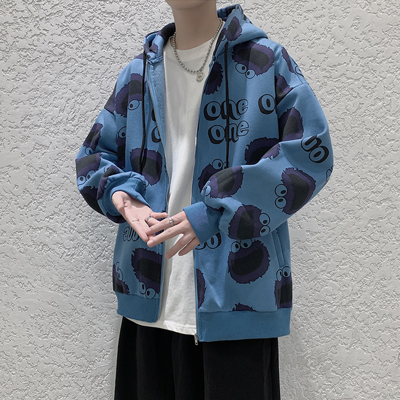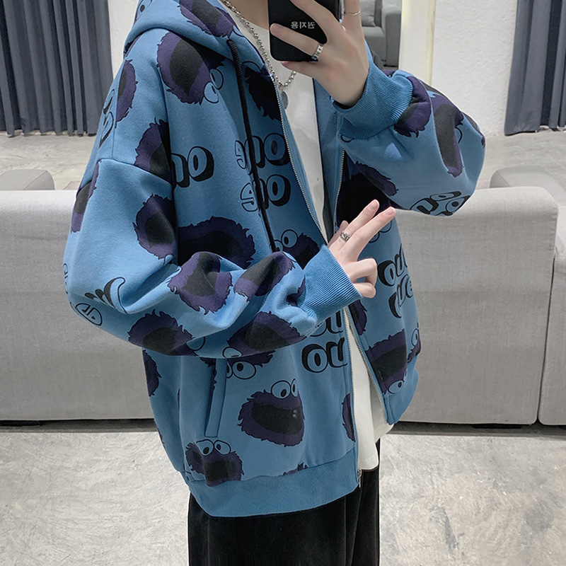 连帽设计,青春减龄,卡通造型,充满童真趣味,夹克款式,穿着舒适自在,短款设计,穿出大长腿,卡通印花,彰显青春活力,宽松卫衣,舒适自在。