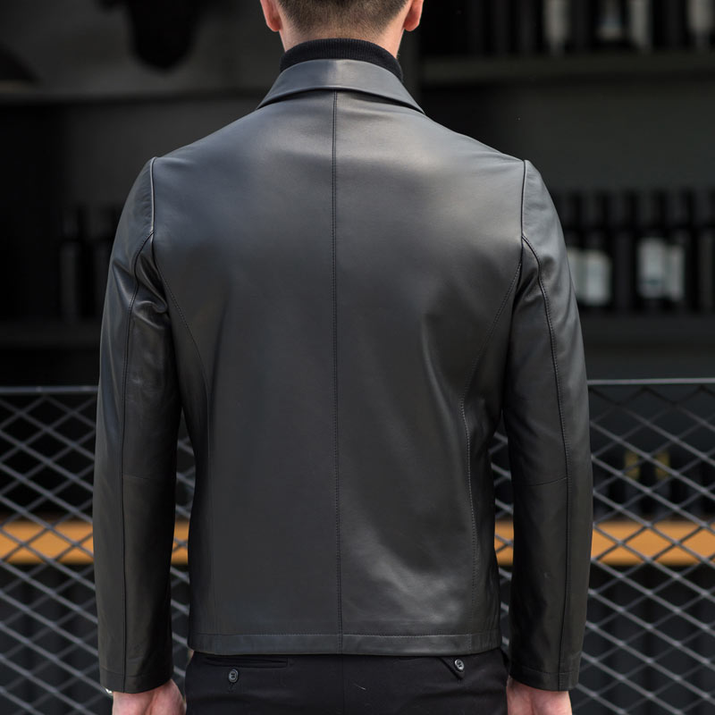 修身的版型设计能更好的凸显出迷人的身材。这款翻领羊皮的夹克,凸显出时尚大气气息。