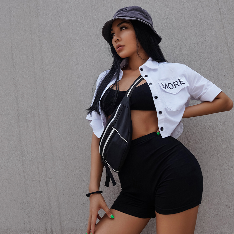 简约的高腰设计,搭配上修身的版型,上身显瘦又显高。
