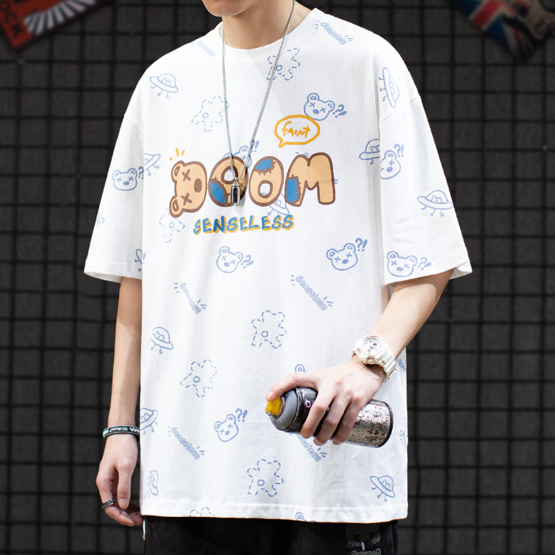这款t恤是简约的风格,宽松的版型,时尚百搭,胸前的字母印花,很有个性,搭配牛仔裤或者短裤都很好看。