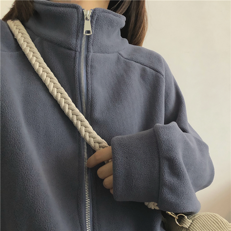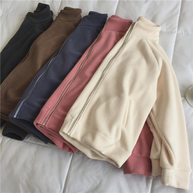 立领设计,穿着舒适保暖,摇粒绒外套,手感柔软舒适,修身版型,凸显曼妙身姿,上衣设计,上身舒适自在,经典百搭,适合秋冬穿着。