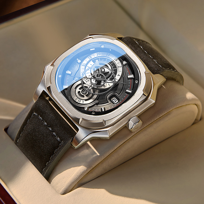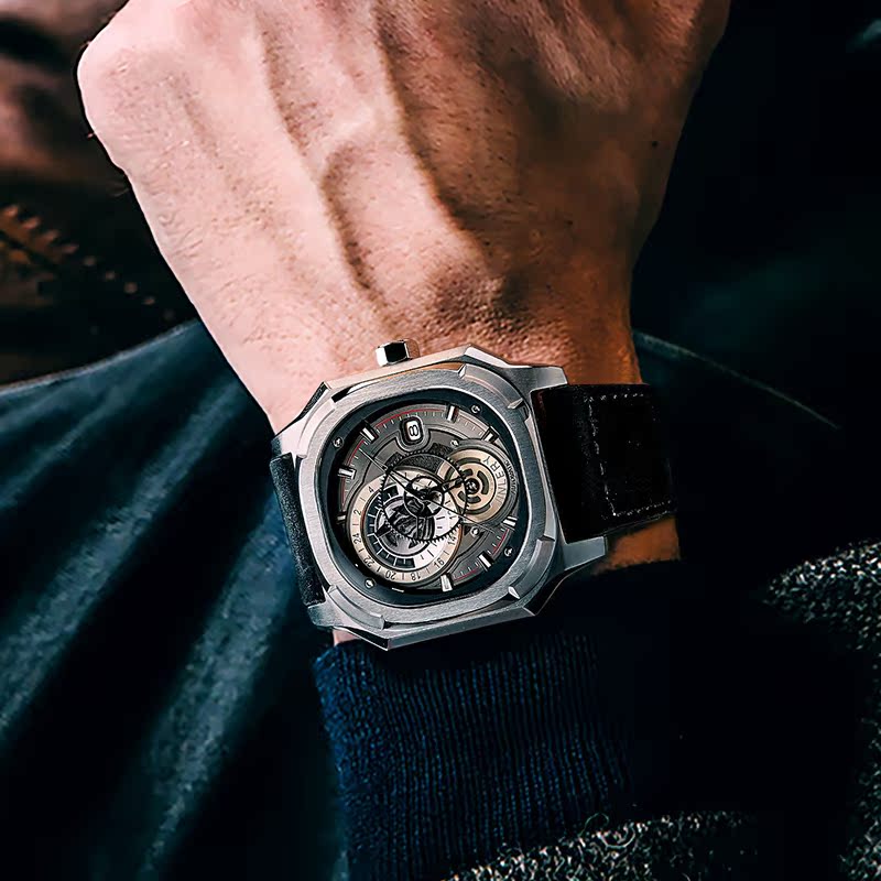 表盘上的镂空式,极富动感之美感。简约圆形表壳,彰显男士硬朗风范。精致的方形表盘设计,给人一种沉稳又带有个性。