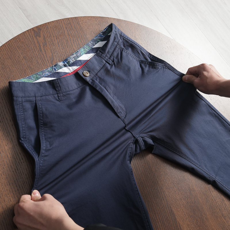 弹力腰头设计,穿着舒适自在,不紧勒。简约的斜插口袋设计,满足随身小物品置物。