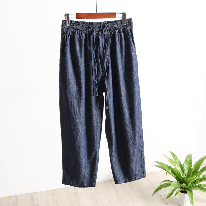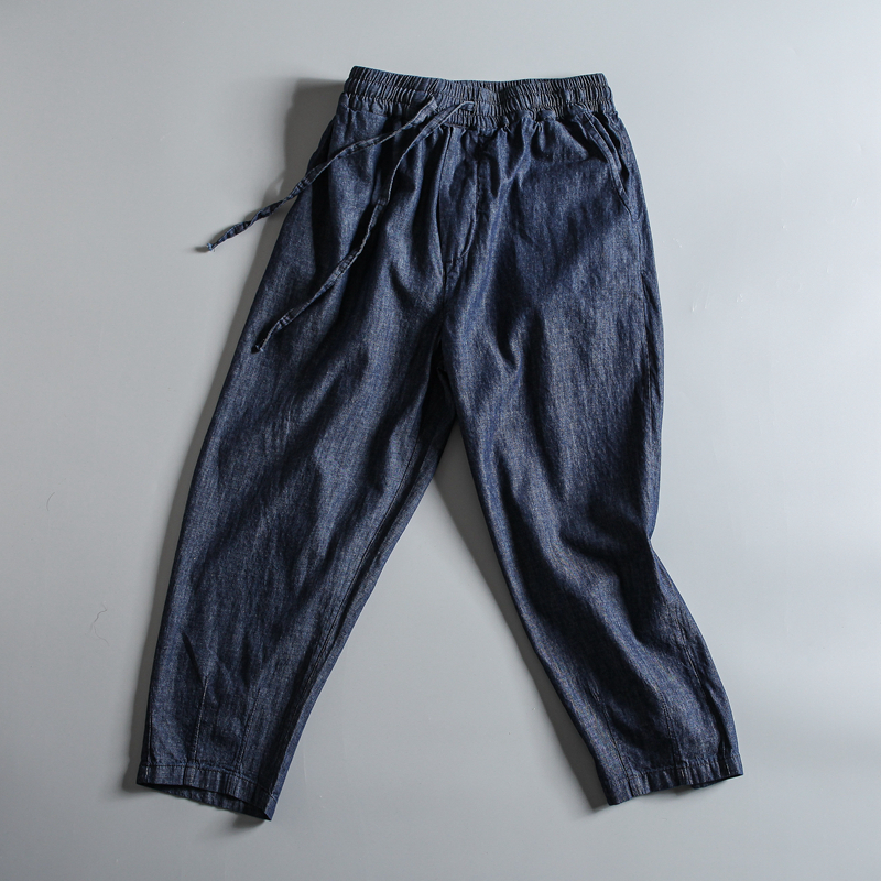 精选的牛仔面料,让裤子舒适柔软且透气。松紧的腰围,穿着舒适又方便。两侧插兜,简洁实用。