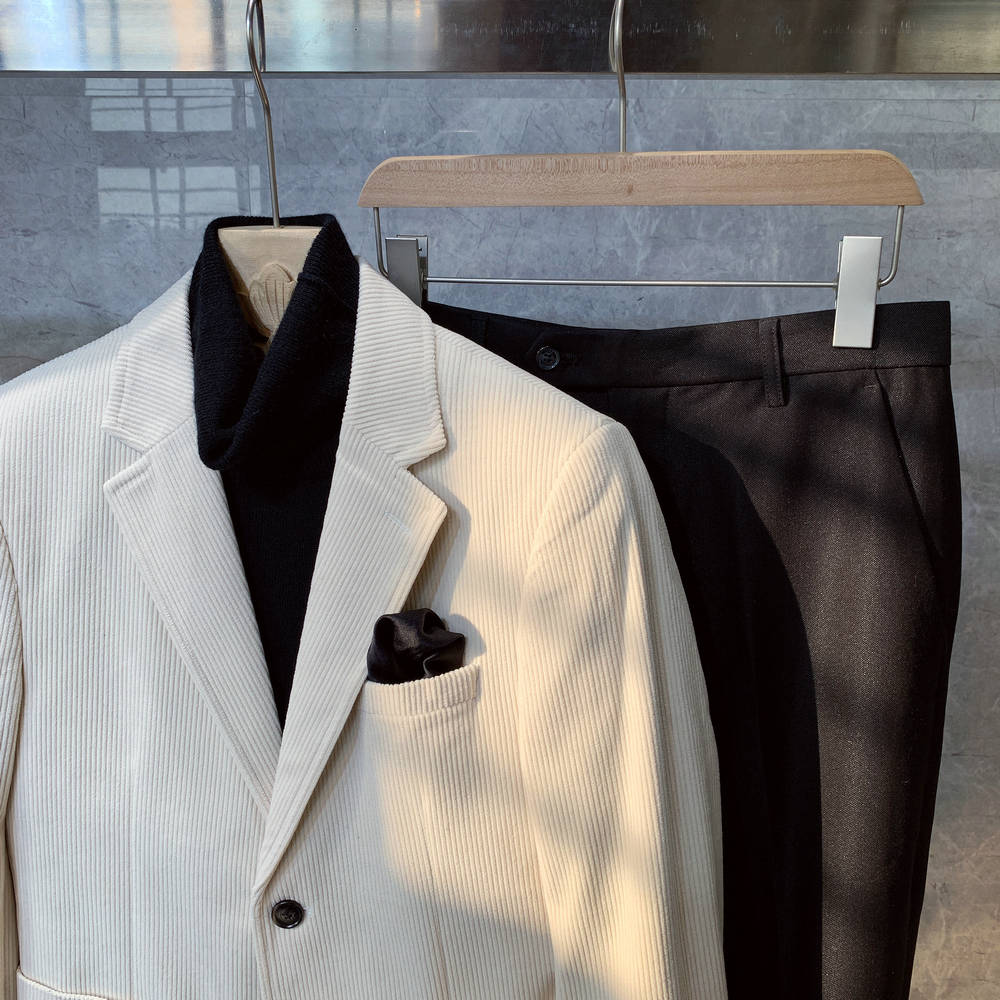 撞色设计,个性十足,西服翻领,修饰颈部线条,修身版型,凸显身材曲线,多种颜色,满足不同需求。