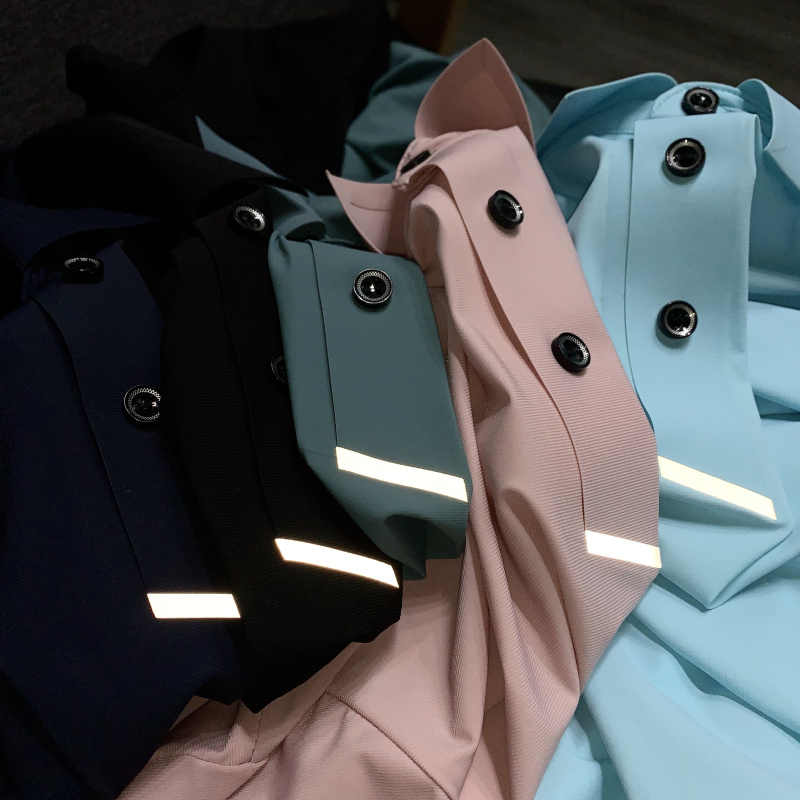 简约的高腰设计,搭配上修身的版型,上身显瘦又显高。