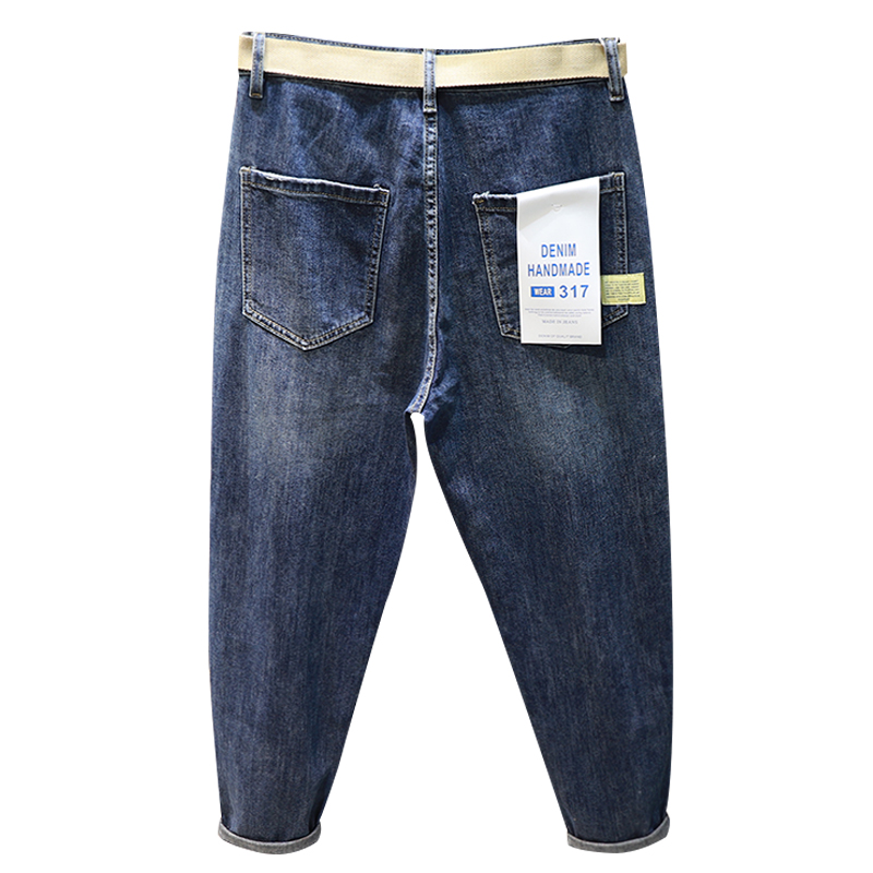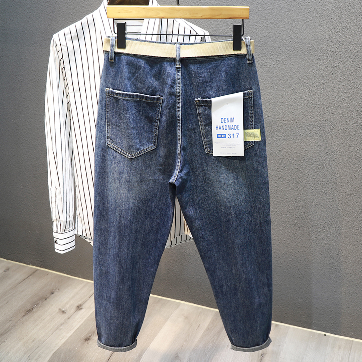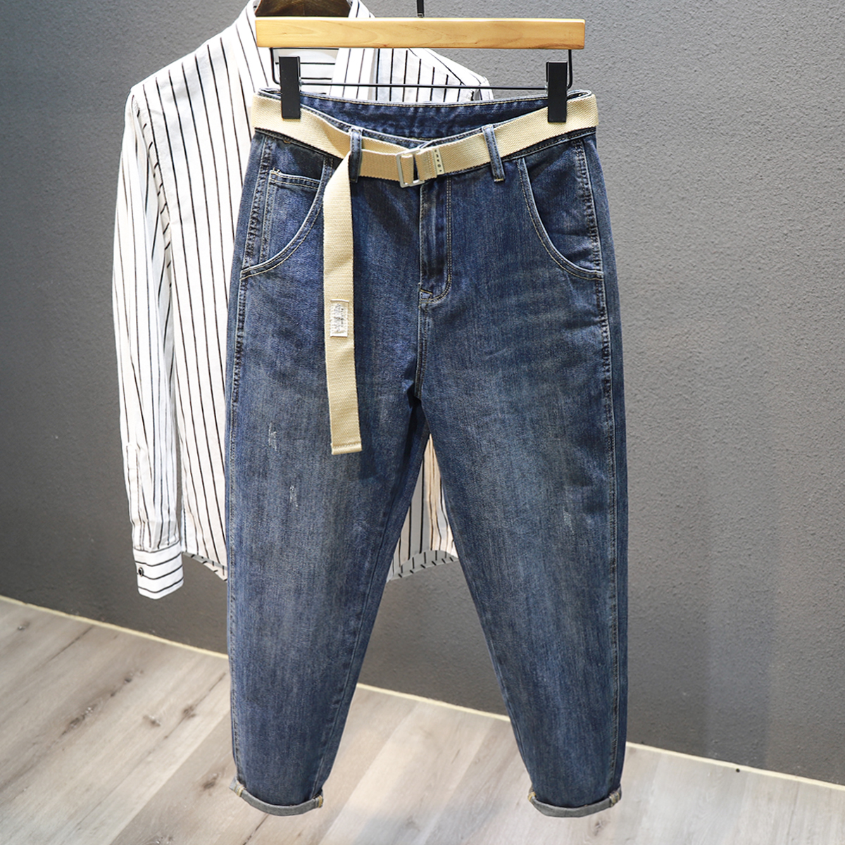 休闲款式,穿着舒适自在。裤脚设计,彰显男士魅力。蓝色的牛仔裤,青春活力。