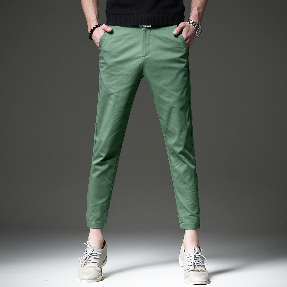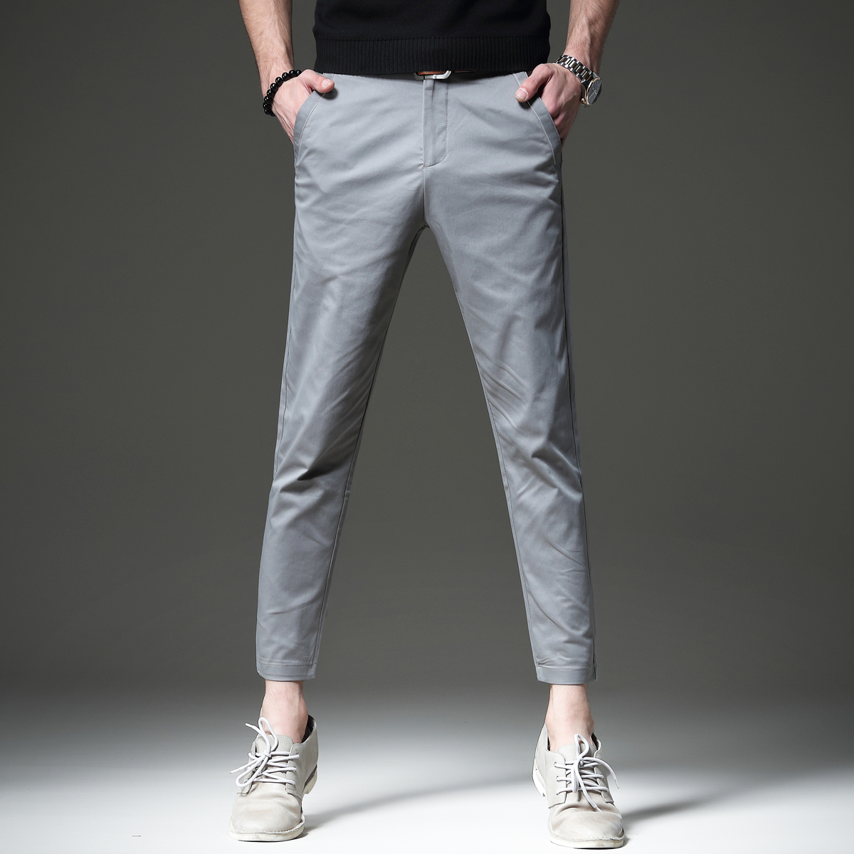 纯色的设计,时尚百搭。宽松版型,穿着舒适自在。小脚裤型,修饰腿部线条。