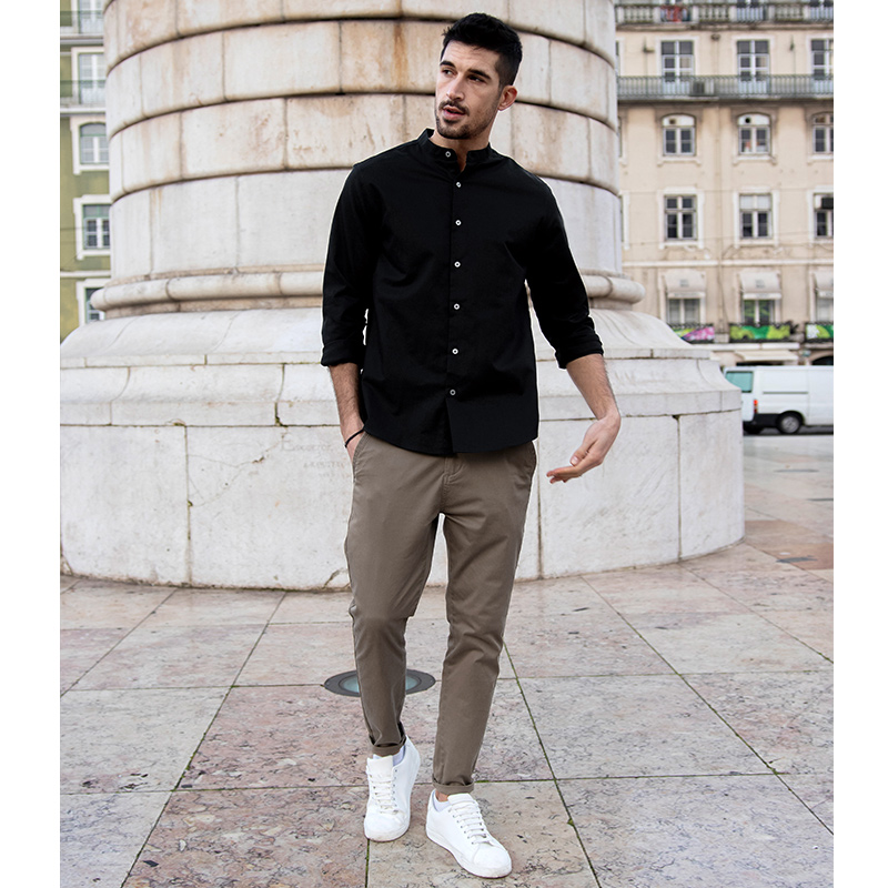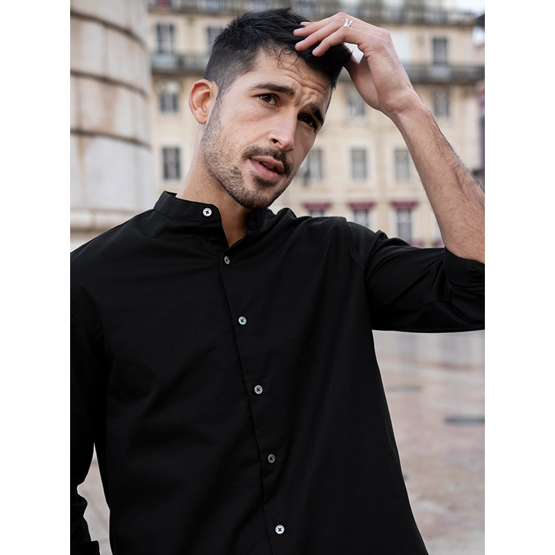西装领,彰显男士魅力,长袖设计,修饰手臂线条,宽松衬衣版型,休闲百搭,商务风格,适合各种场合,纯色衬衫,尽显绅士气质。