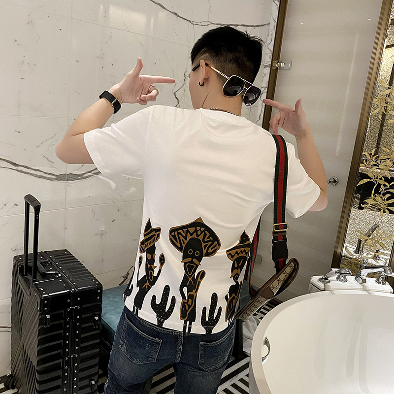 这款t恤是简约的风格,宽松的版型,时尚百搭,胸前的字母印花,很有个性,搭配牛仔裤或者短裤都很好看。