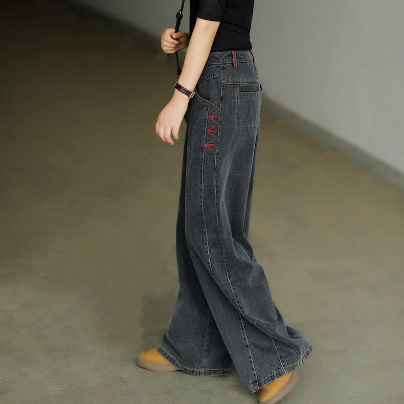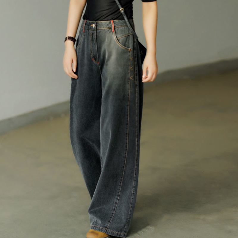 直筒裤设计,穿着舒适自在,宽松直筒版型,修身显瘦,休闲款式,适合日常穿搭,纯棉牛仔面料,亲肤透气。