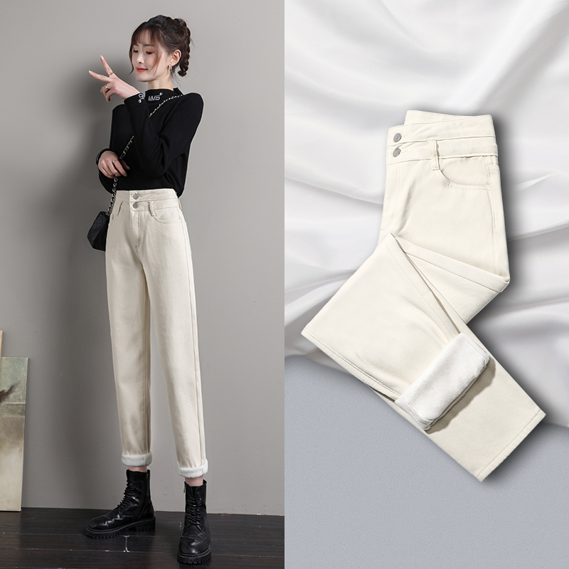 高腰设计,拉长身材比例。高腰牛仔裤,显瘦显腿长。直筒裤型,修饰腿部线条。