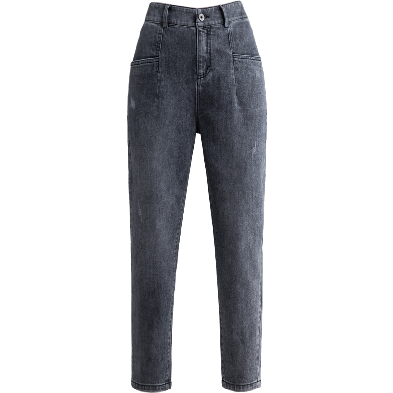 这款牛仔裤的设计很有特色,高腰的版型,很好的修饰了身材比例,显瘦效果很棒,搭配一件T恤,就能轻松穿出时尚感。