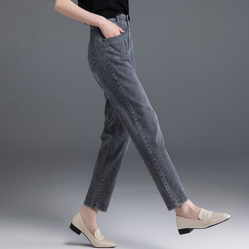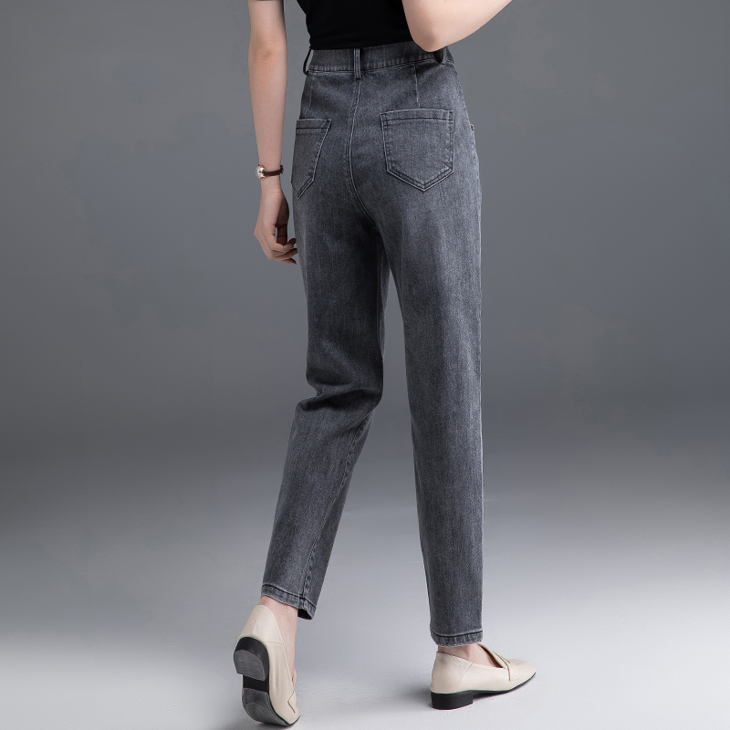 高腰设计,拉长身材比例。高腰牛仔裤,显瘦显腿长。直筒裤型,修饰腿部线条。