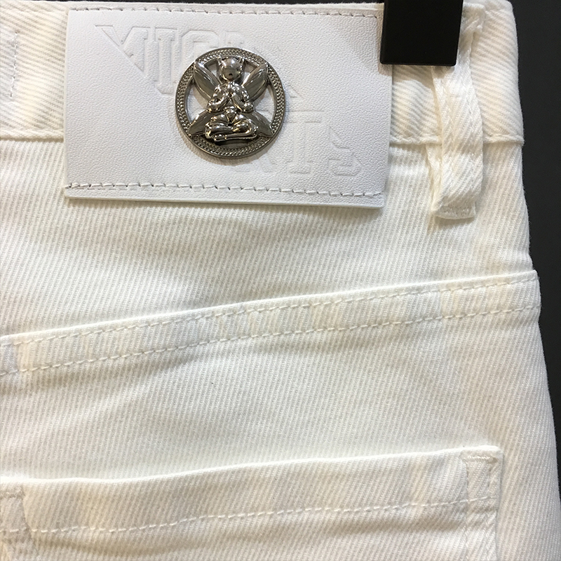 这款牛仔裤的设计很有特色,高腰的版型,很好的修饰了身材比例,显瘦效果很棒,搭配一件T恤,就能轻松穿出时尚感。