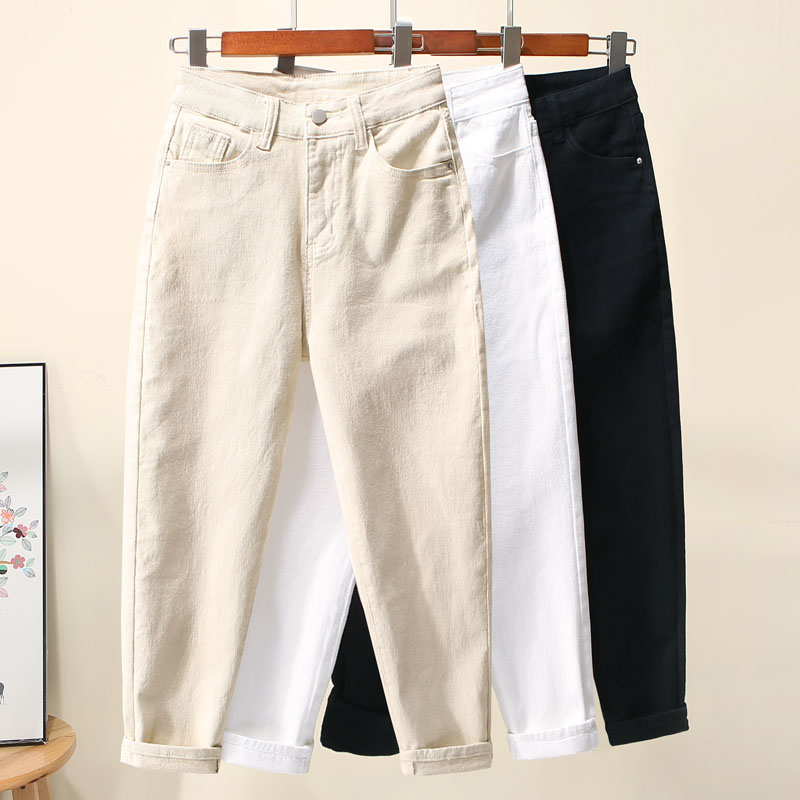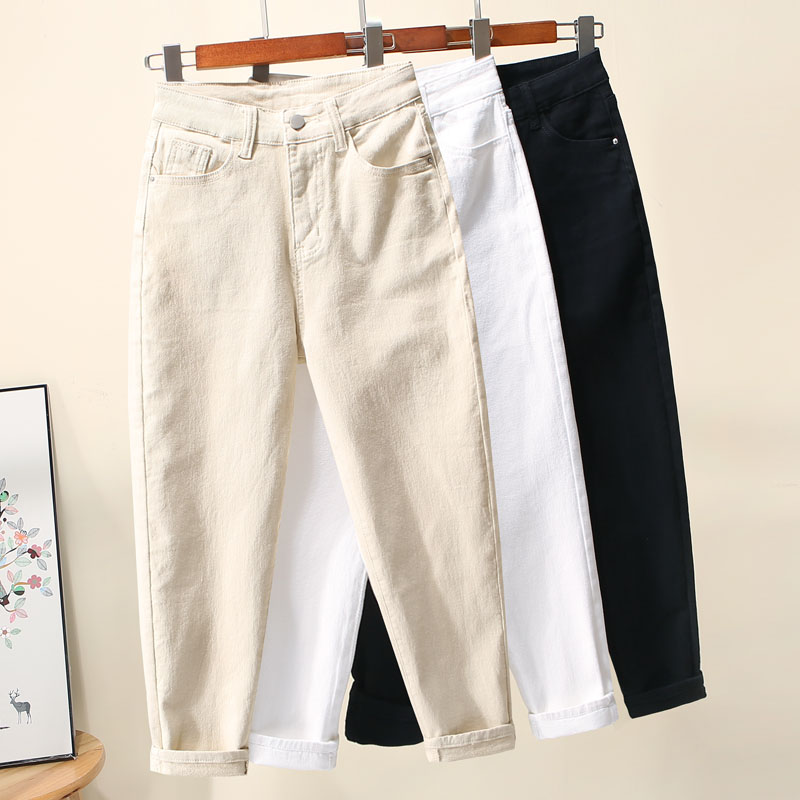 高腰设计,拉长身材比例。高腰牛仔裤,显瘦显腿长。直筒裤型,修饰腿部线条。